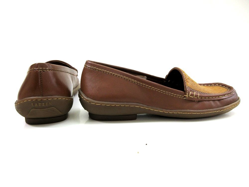 ラルフローレン RALPH LAUREN TRUDY 22.5cm/23cm スリッポンレザーシューズ 茶 ハラコ 婦人靴☆A1456