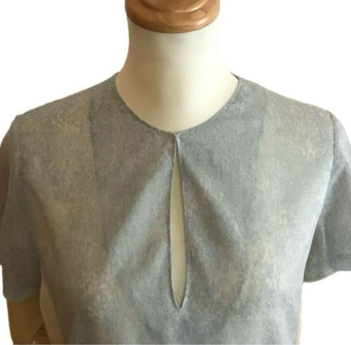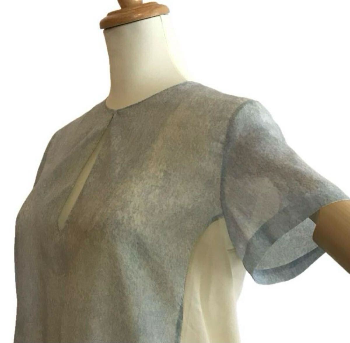 ストレッチ性のあるシルク素材を用いたブラウス。軽やかに風を通してくれるようなゆったりとしたボックスシルエット。