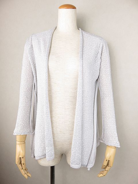ダーマコレクション スパンコール 長袖カーディガン ライトグレー S