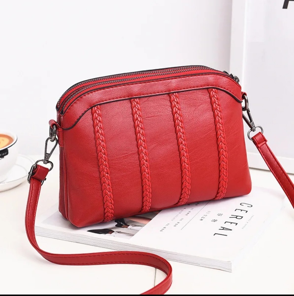 ショルダーバッグ レディース 肩掛け 斜めかけ ポシェット 小さいバッグ 小物入れ 編み込み ミニバッグ 多機能 大容量 レッド
