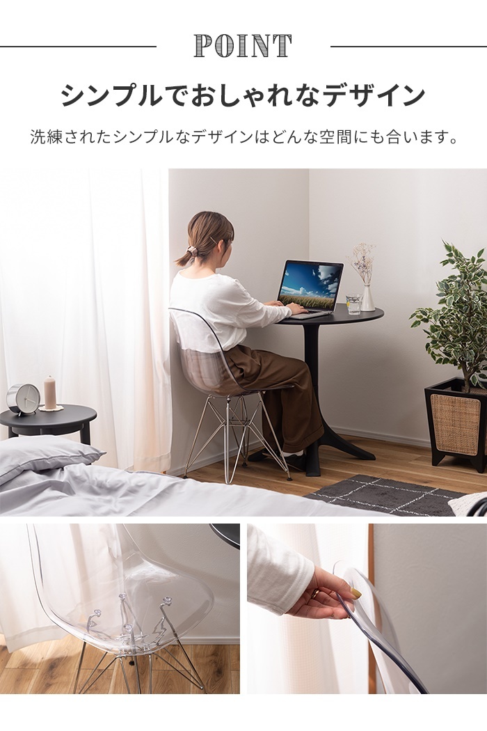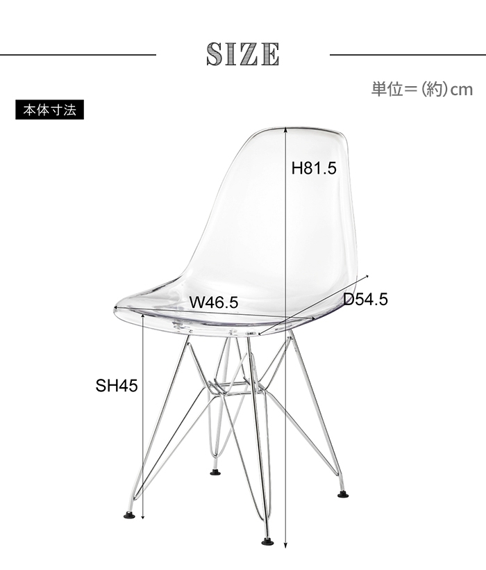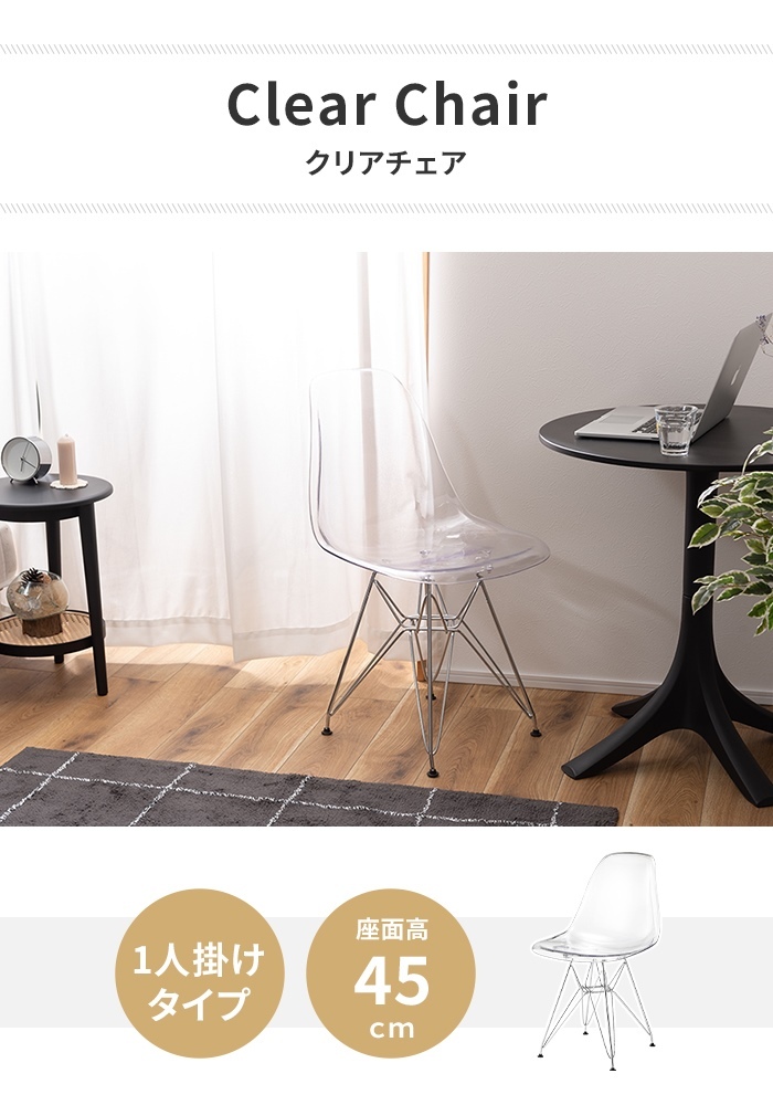 椅子 チェア クリアチェア 幅57 1人掛け デスクチェア 食卓椅子 チェア単品 背もたれ 軽量 透明 シンプル スケルトン ダイニングチェア スケルトンチェアー イス 椅子のみ シンプルチェア アームレス スチール脚 コンパクト 省スペース 持ち運び お手入れ簡単 組立式 ダイニング リビング |