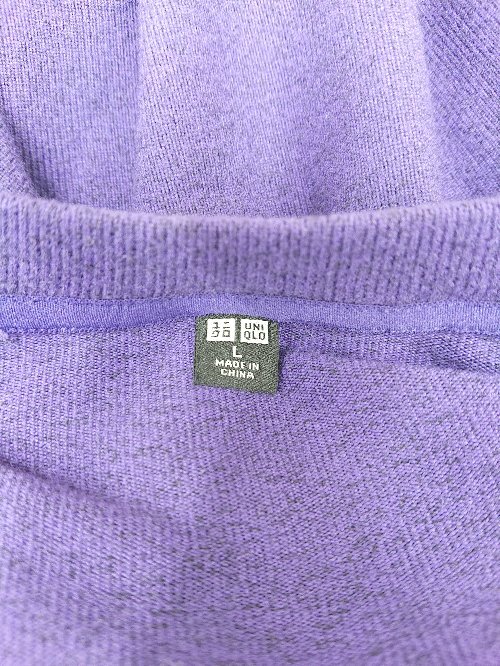 ◇ ⊇ UNIQLO 長袖 ソフトニットフリースクルーネックT サイズL パープル レディース メンズ P