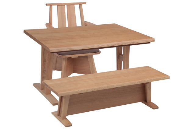 120センチ巾のT字型2本足こたつテーブル+ダイニングチェア+ベンチのセットです。