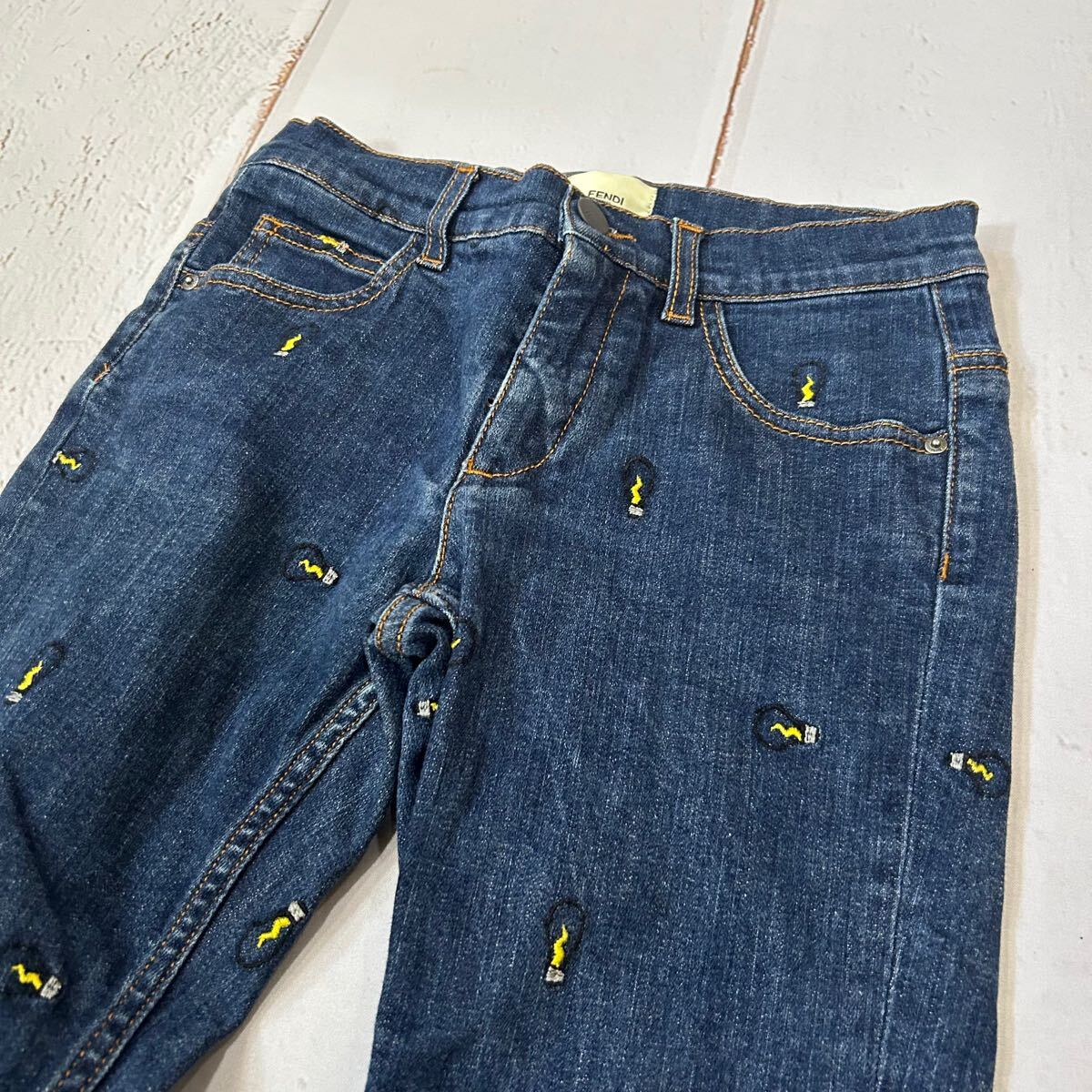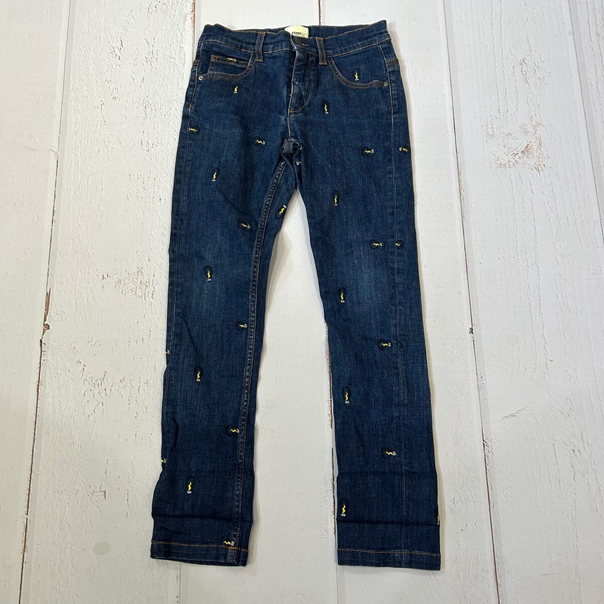 B ■ 高級ラグジュアリー服 'イタリア製' FENDI ROMA フェンディ 総柄 ストレッチ素材 デニムパンツ / ジーンズ 10A KIDS キッズ ボトムス