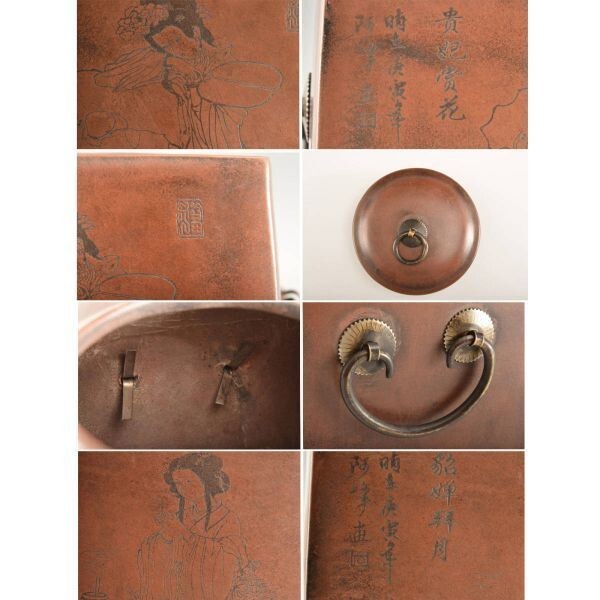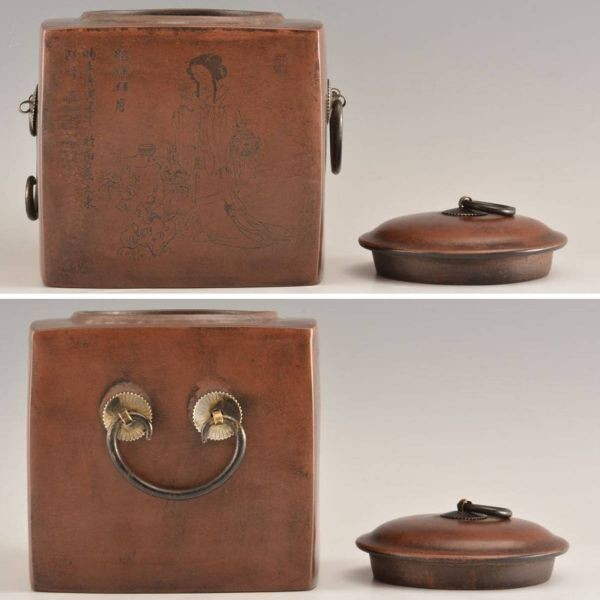 C03041 朱泥美人画賛蓋物:本物保証 送料無料