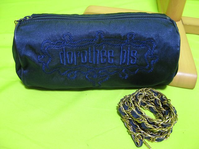 ★dorothee bis★ドロテビス★チェーンショルダー★ポーチ★筒型★ロゴ刺繍★石付きチャーム★チェーン取外可能★2ウェイ★