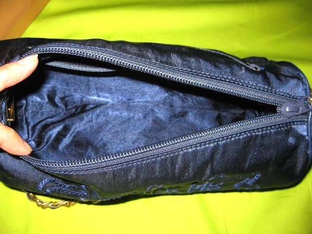筒型でロゴ部分が刺繍で施されていて、ファスナーのチャームも高級感があります。
