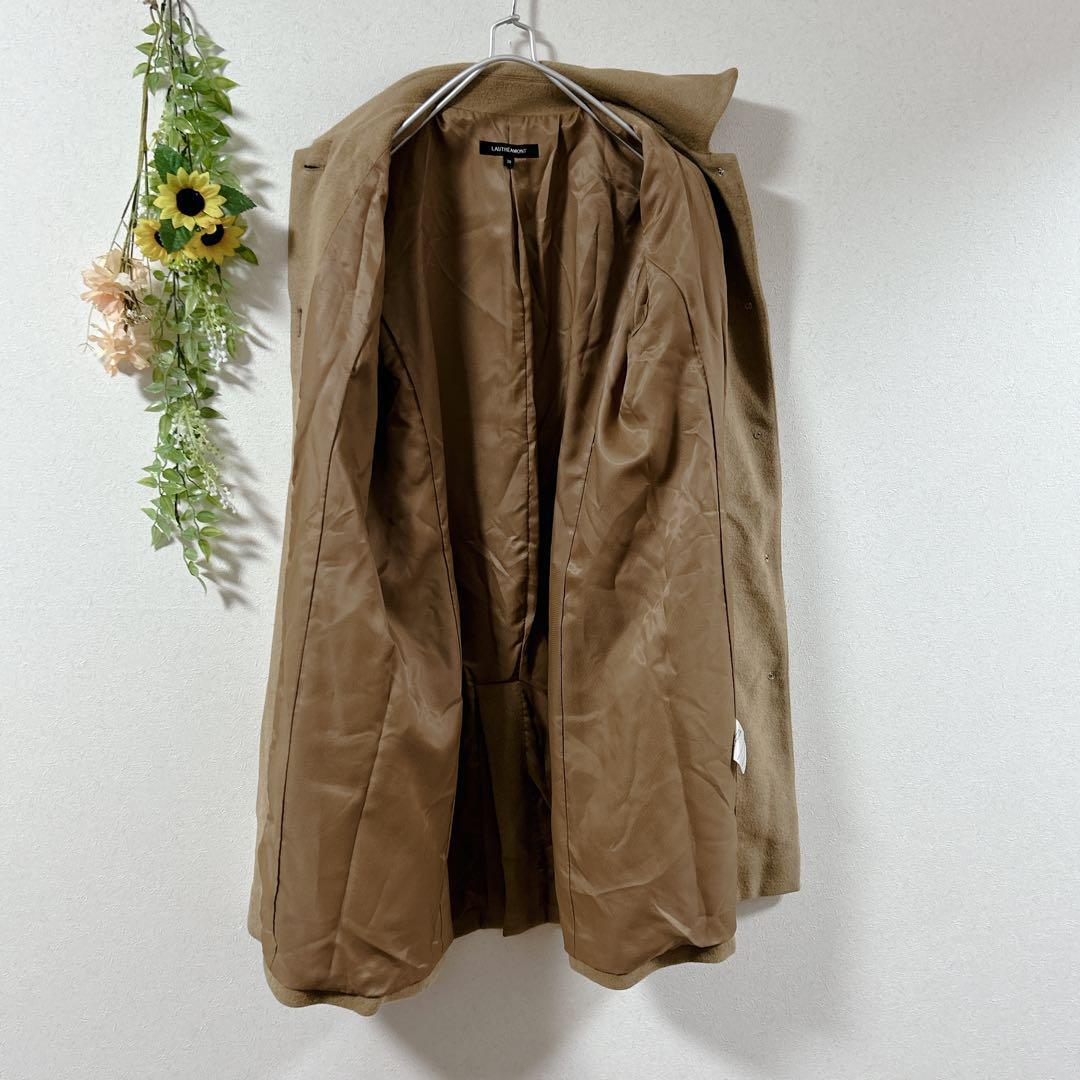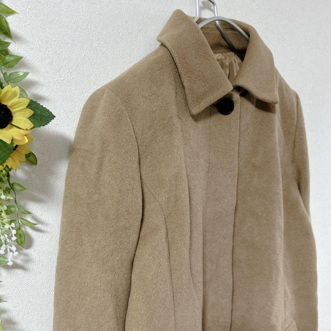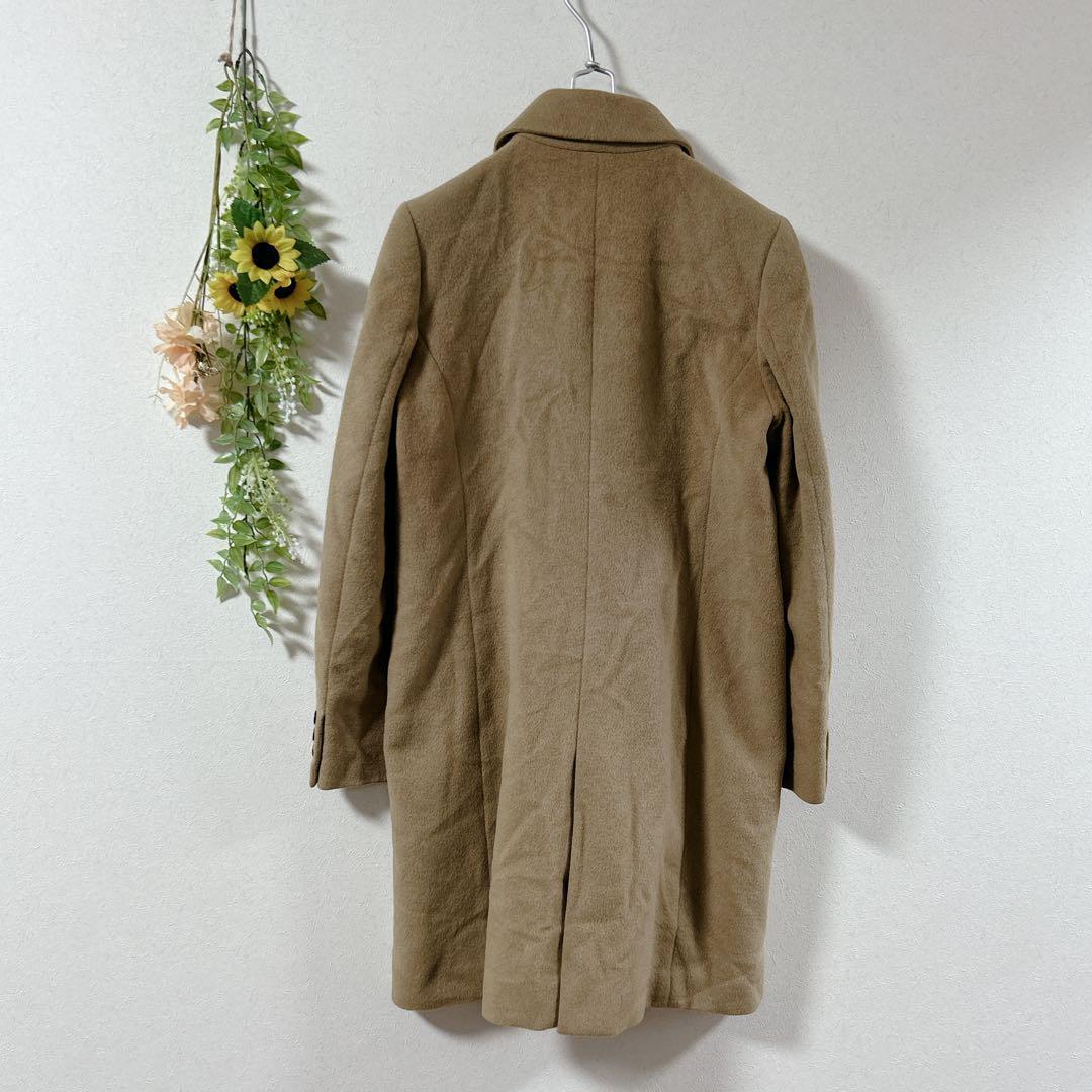 このベージュのチェスターコートは、シンプルでありながらも洗練されたデザインが特徴です。ロング丈で、様々なコーディネートに合わせやすいアイテムです。