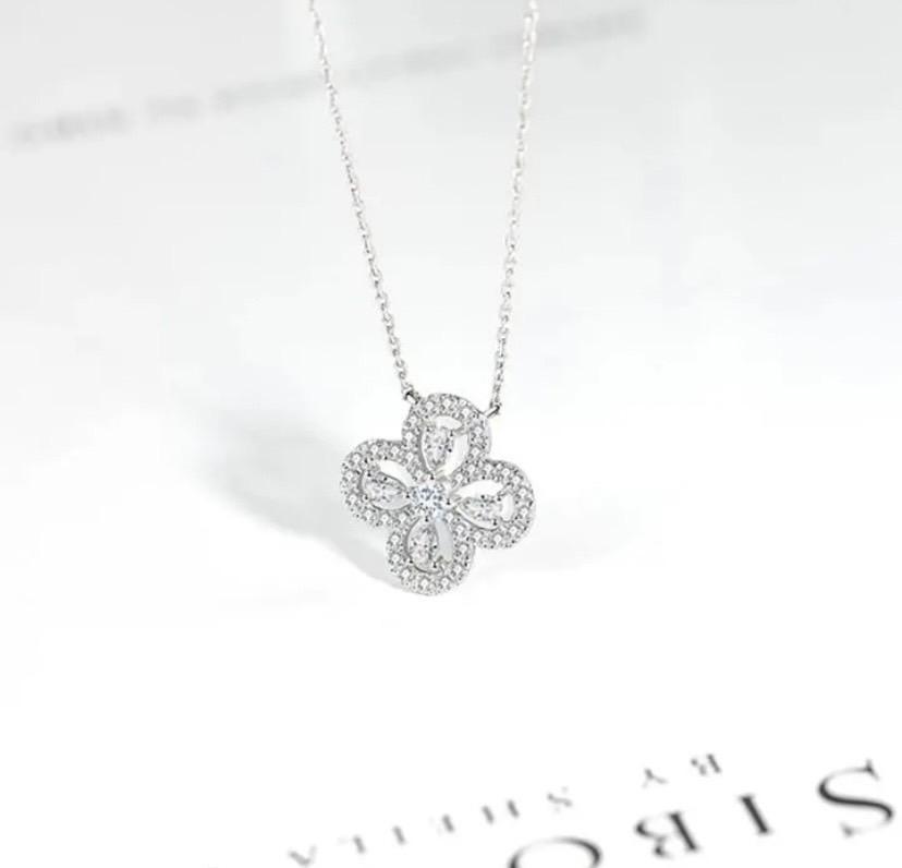140★新品未使用★レディース クローバーネックレス S925シルバー ジュエリー アクセサリー 結婚式 ストーン ストリート ロック パンク