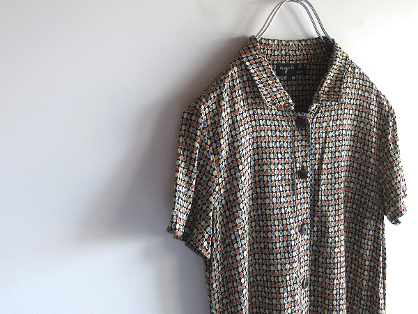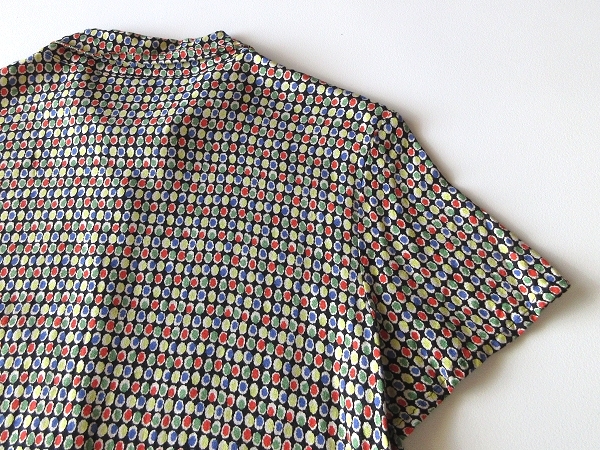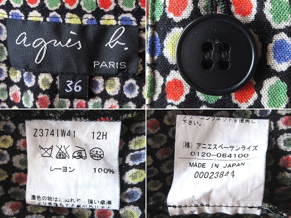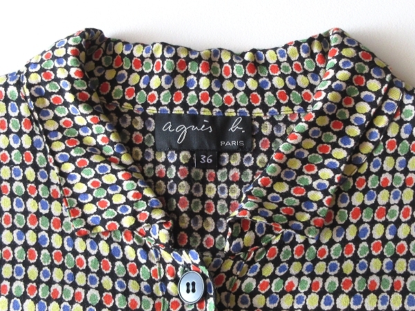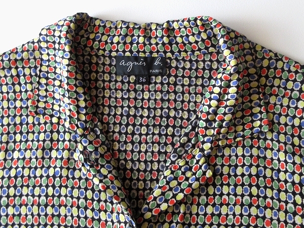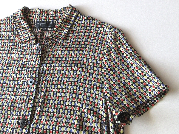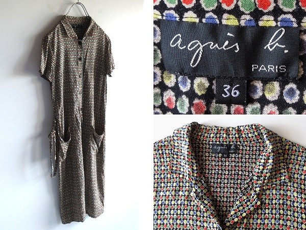 agnes b. アニエスベー ウエストベルト カラフルドット柄 アート柄 レーヨンジャージー 半袖 シャツワンピース 36 日本製 国内正規品