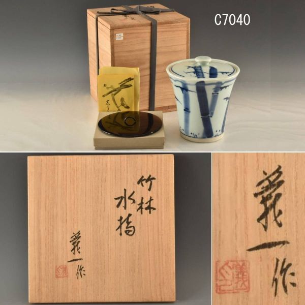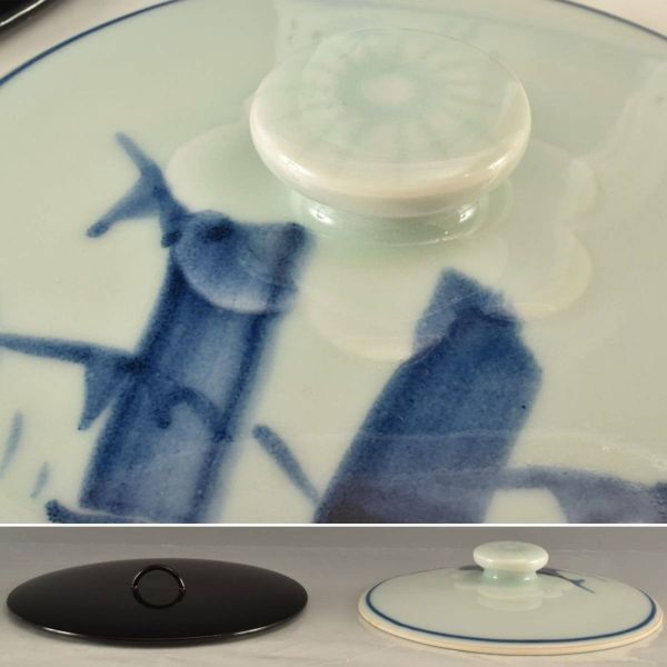 状態:本体1582g・蓋399g・替蓋109g。良好。貫入見えます。水漏れなし。高台内に掻銘「義」とあり。
