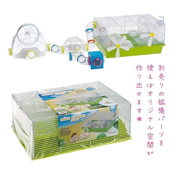 イタリアferplast社製のハムスター、マウス用のケージ。すぐに飼育できるフルセットです。■(幅X奥行X高さ)50×35×25cm※床材は商品に含まれません。※イタリアferplast社の仕様変更により本体の色やパーツの形状など写真と異なる場合がございますがご了承下さい。