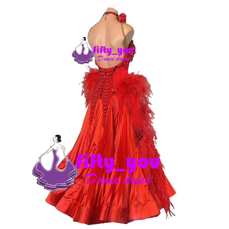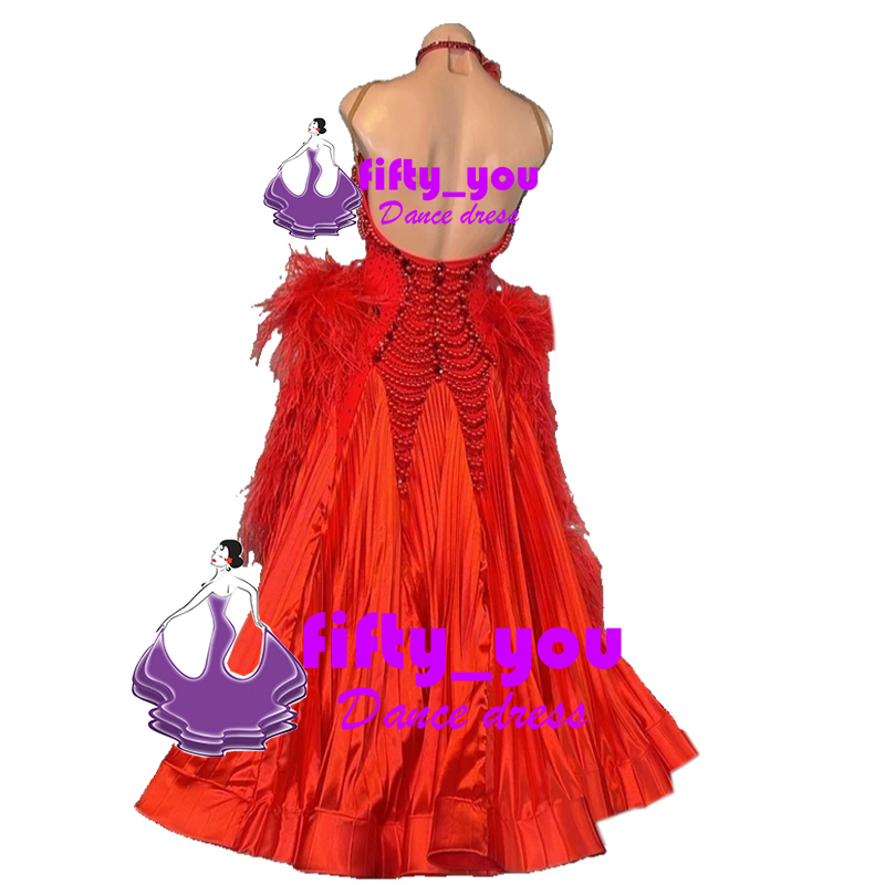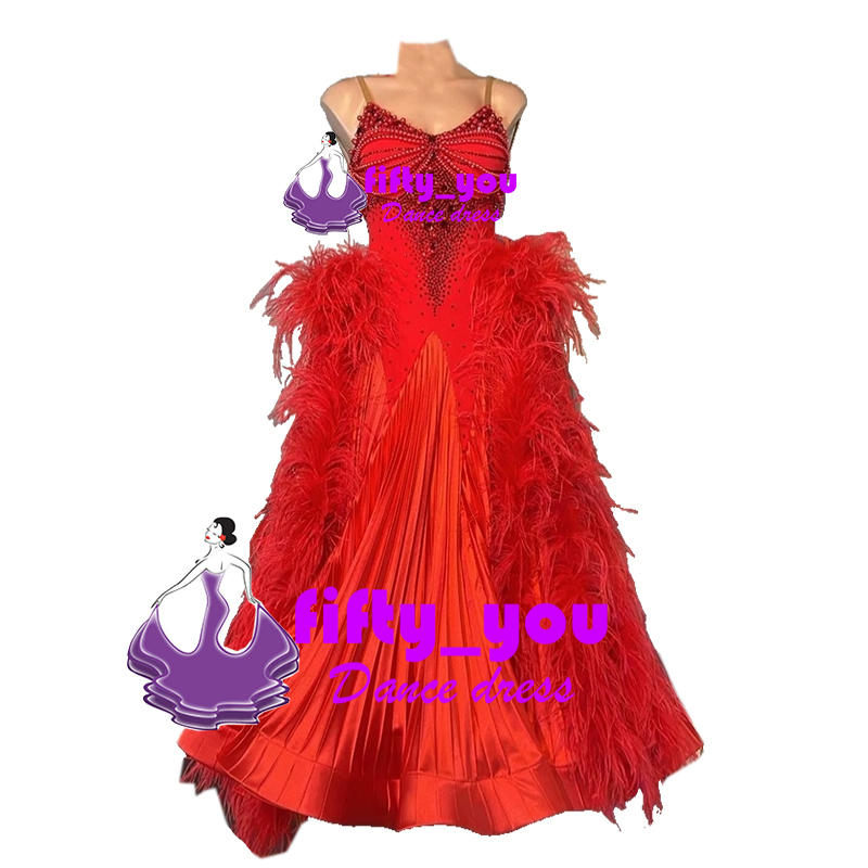 新品fifty_you モダン競技ドレス レディース社交ダンス サイズセミオーダー 高品質衣装 スタンダードドレス ボリュームファーフロート