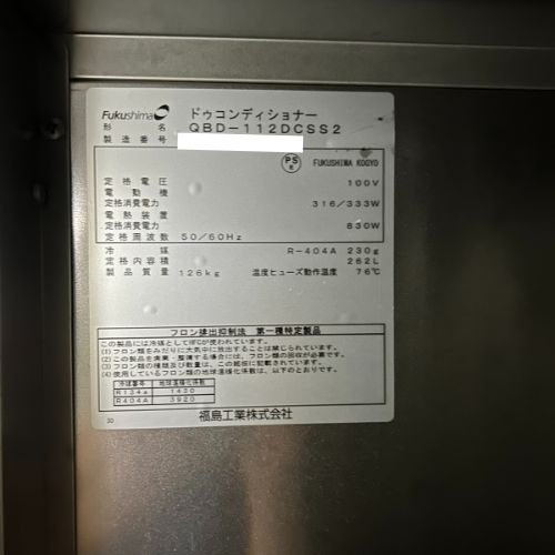 【業界最長1年保証】ドゥコンディショナー フクシマガリレイ(福島工業) QBD-112DCSS2 プロパンガス 業務用 中古/送料別途見積