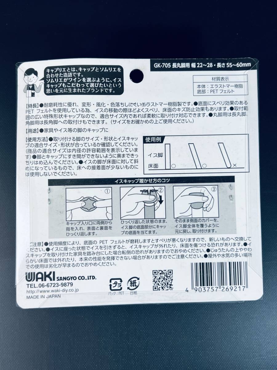 床暖房対応 WAKI 【ワイドフェルトキャップ 長角脚用 ライトブラウン 4個入 GK-805】 耐摩耗性 クッション キズ防止 防音対策 家具 イス