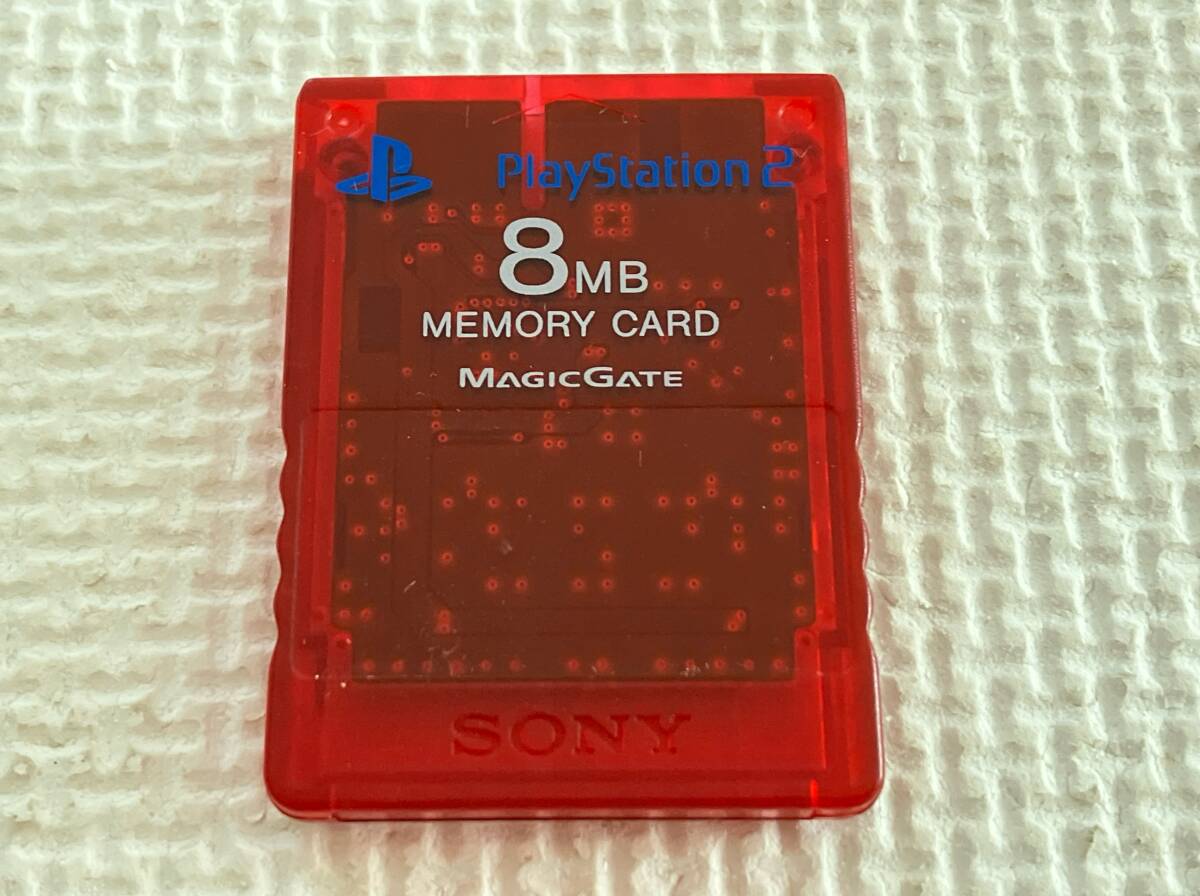 24-MC-85 プレイステーション2 メモリーカード クリムゾンレッド 8MB データクリア端子研磨動作品