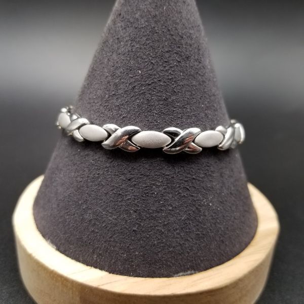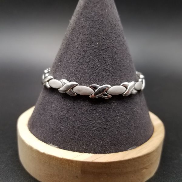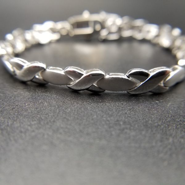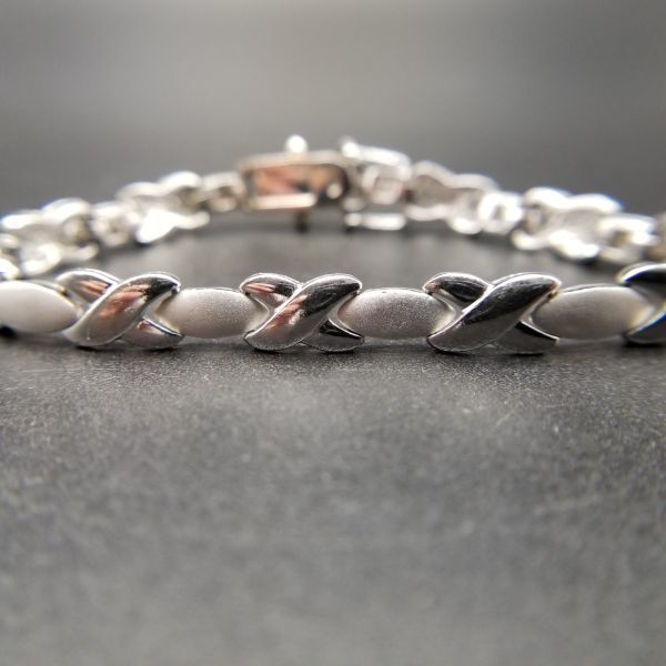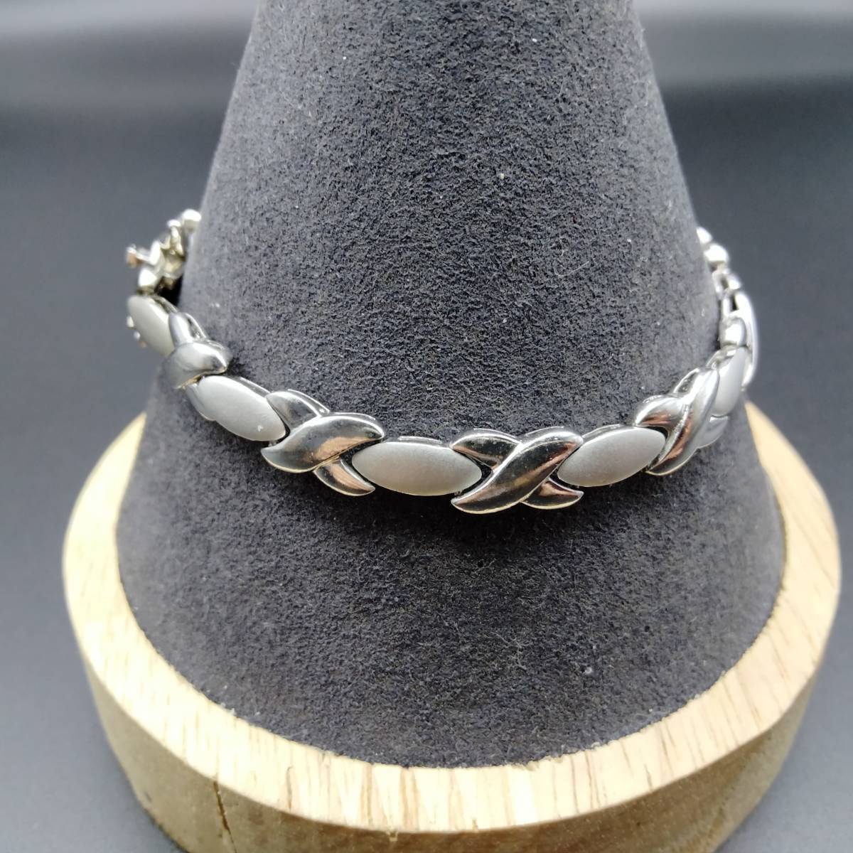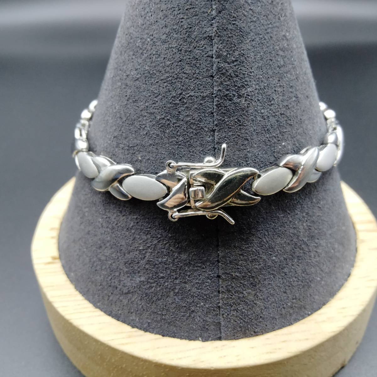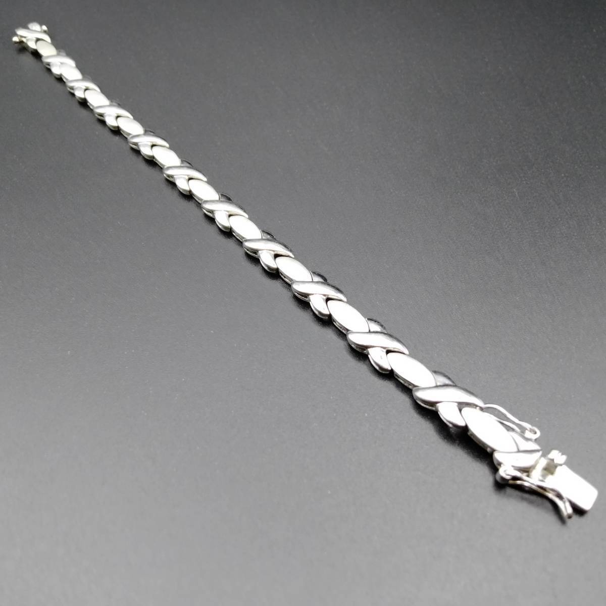 X オーバル チェーン リンク スタイリッシュ シルバー ビンテージ ブレスレット 14g 2トーン R8-M