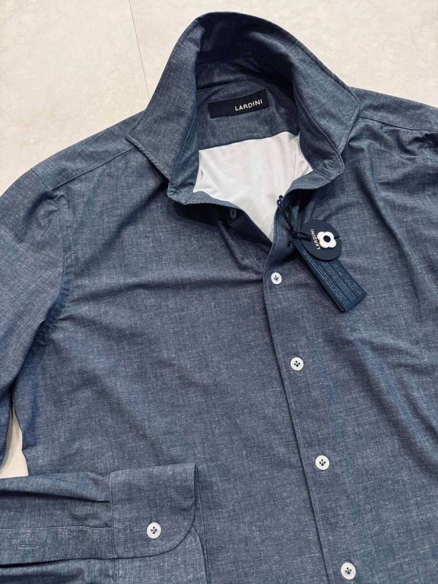 「LARDINI」ラルディーニのシャツに新たなモデルが追加。 なかなか実現せず何度も何度も試作を繰り返し遂に完成した至極の1品で、何故なかなか実現しなかったのか?その秘密は使用される素材にあります。 それは極薄のハイパーストレッチジャージィ素材。 薄くてもの凄く伸びる為、非常に縫製が難しい。高い技術が必要です。 1枚ならいざ知らず、量産となると高い品質を保つのが難しかったというわけです。 長い時間をかけ、やっと「LARDINI」のスーツ、ジャケットのインに着ても遜色ないドレスシャツに仕上がった、まさにスペシャルなシャツです。 「テクノファブリック」で、洗濯可能は当たり前として速乾素材の為、乾きが早い。ゆえに汗をかいてもすぐに乾く利点があります。 通気性もよくシルクのような肌触りで着用感もバツグン。 そして驚くほどの伸縮性、全方向に伸びるハイパーストレッチですので着ていることさえ忘れてしまいそうな着心地です。 今はパンツもジャケットも、ほとんどのアイテムが伸びる素材を使用し楽チンです。 ドレスシャツだけが伸びない。そんな悩みをついに解決してくれた「LARDINI」の新作ドレスシャツを是非お試し下さい。 ブランド:LARDINI / ラルディーニ 素材:ポリアミド73% ポリウレタン27% サイズ:XS(37-38) 着丈:75cm 袖丈:64cm 肩幅:41cm 身幅:49cm ※実寸値となりますが誤差はご了承ください。 ※迅速なお取引を心がけさせていただいております。オークション終了より24時間以内にご連絡をいただけない場合、土日祝日を除き48時間以内にお支払い手続きをいただけない場合は、お取引の意思なしと判断させていただき取引キャンセルとさせていただきます。 万が一上記が不可の場合は事前にご連絡いただくか、入札をお控えいただきますようお願い申し上げます。 ※なるべく現物に近いお色味で撮影するよう心掛けておりますが、閲覧環境の違い等によって違いが出る場合があります。 差し替えトラブルを避ける意味でも上述した旨含め、イメージと違う等での返品は受け付けておりません。 百貨店並みのサービスを求める方や神経質な方の入札はお控えいただきますようお願い申し上げます。 また、差替えやSNS使用後の返品等を防止するためためにも、原則返品には応じられません。 疑問点や心配事等がある場合は入札前に質問欄にてお問い合わせください。 ※当方が出品するすべての商品は間違いなく本物ブランド品となりますので、安心してオークションにご参加ください。 万が一、第三者等により偽物と判断された場合、商品の返品、お支払いただきました全額を返金をいたします。 |