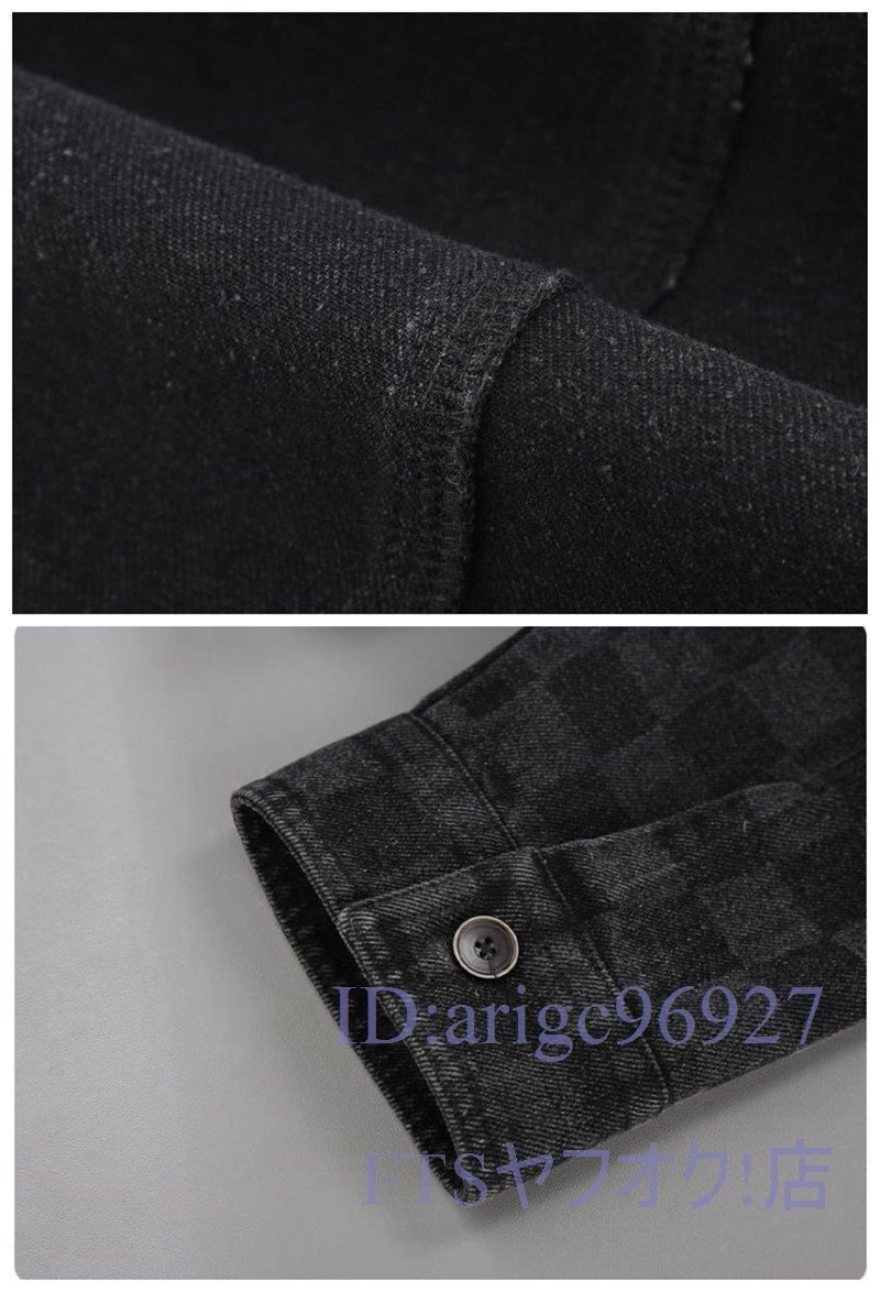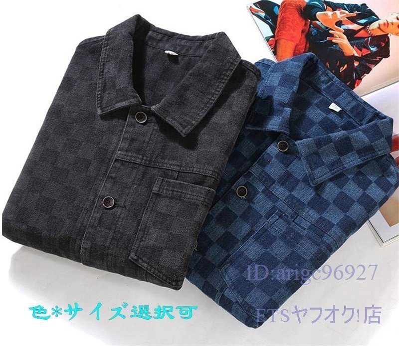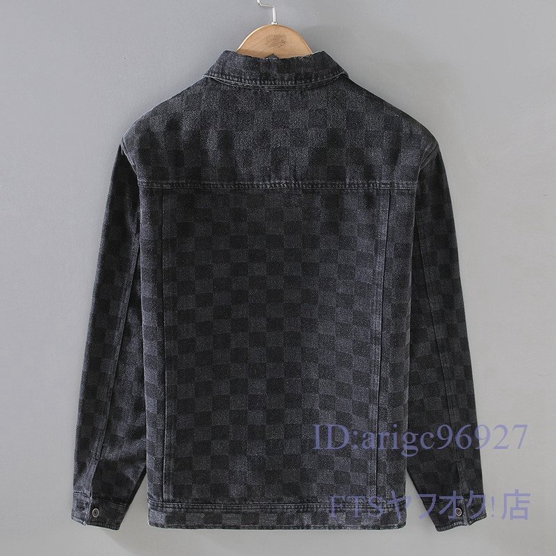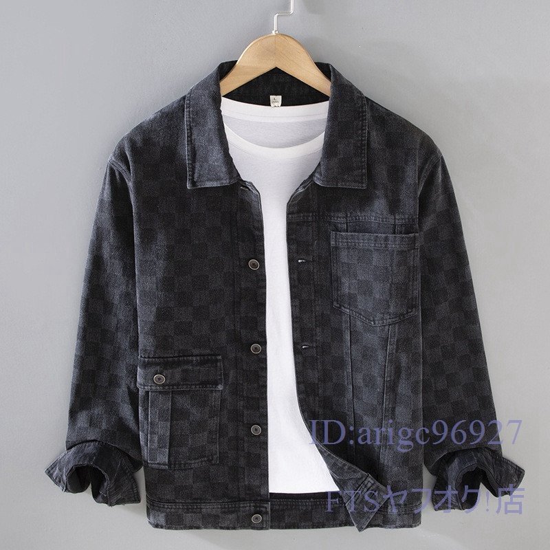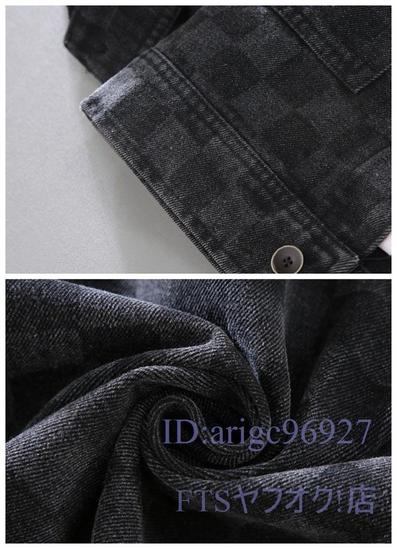 T955☆新品デニムジャケット 春秋服 *メンズ Gジャン ブルゾン チェック柄 ジージャン ジャンパー トップス カジュアル 黒 M