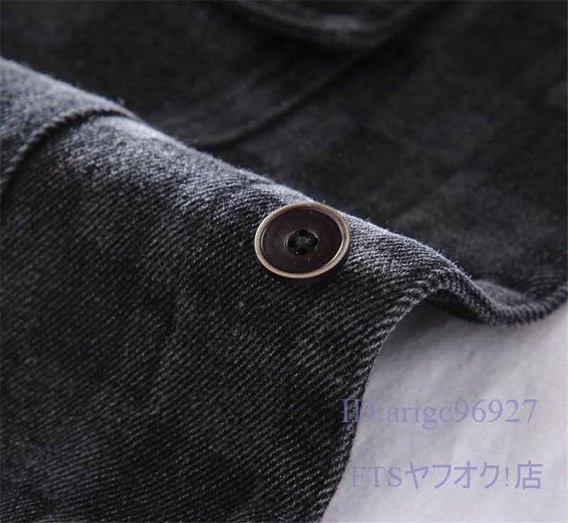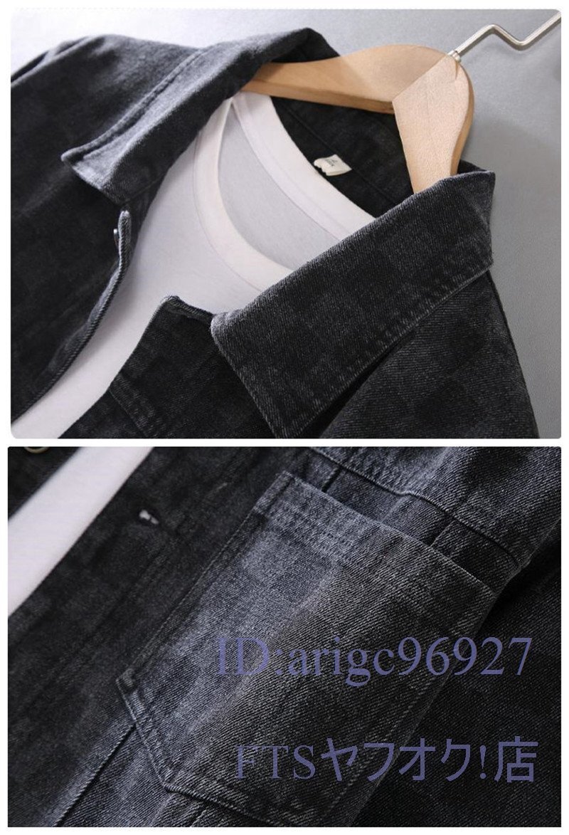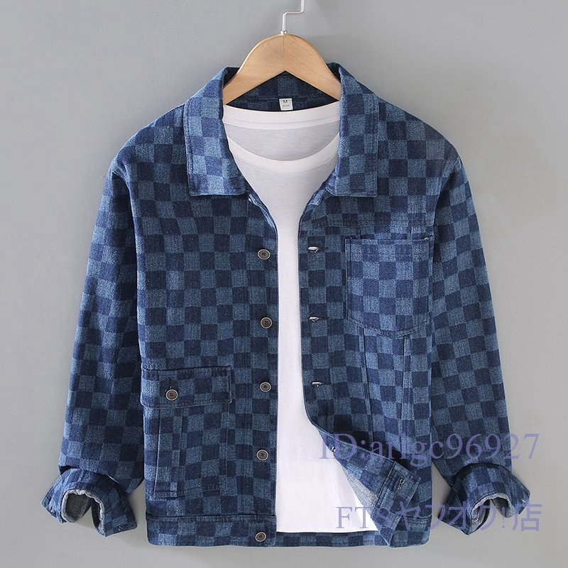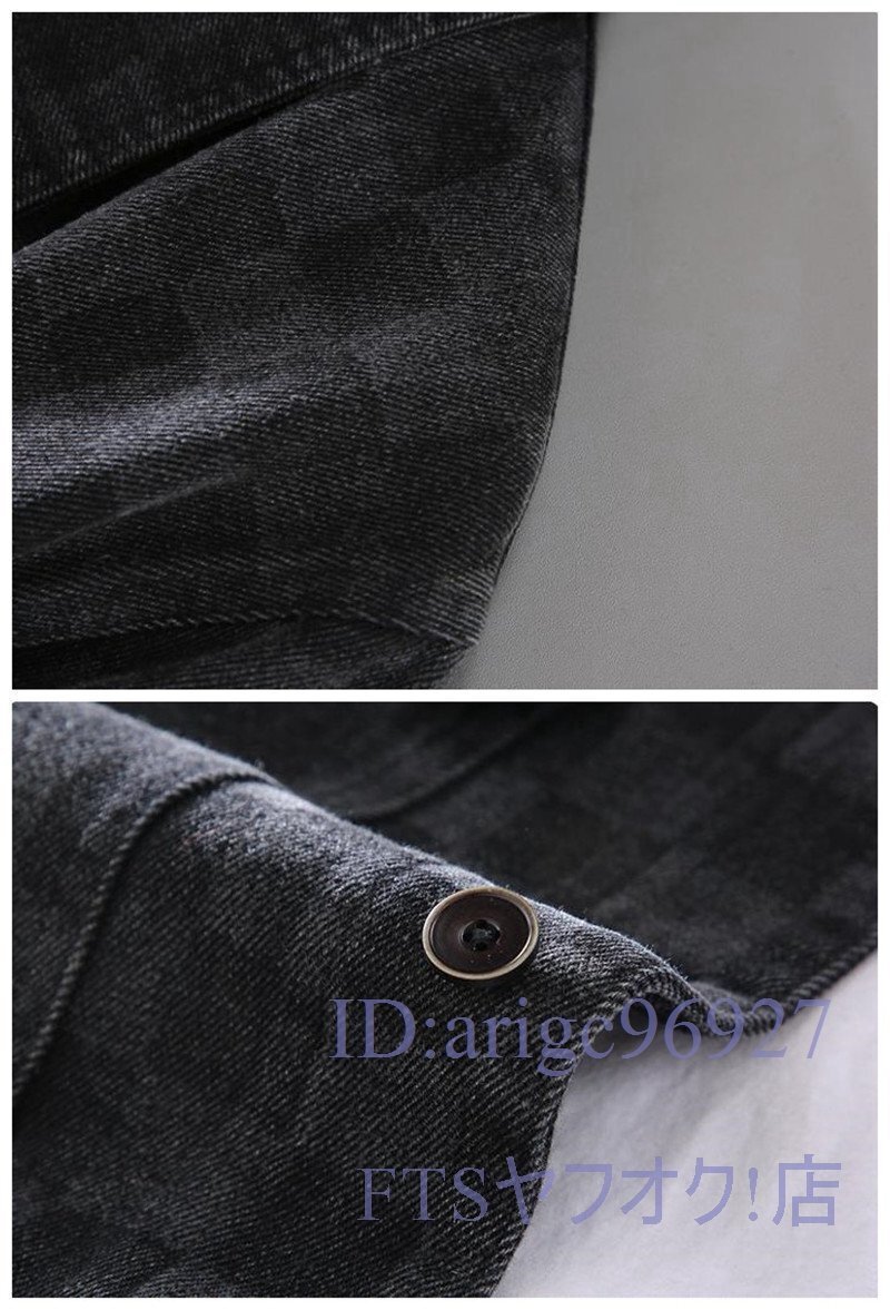 T955☆新品デニムジャケット 春秋服 *メンズ Gジャン ブルゾン チェック柄 ジージャン ジャンパー トップス カジュアル 黒 M