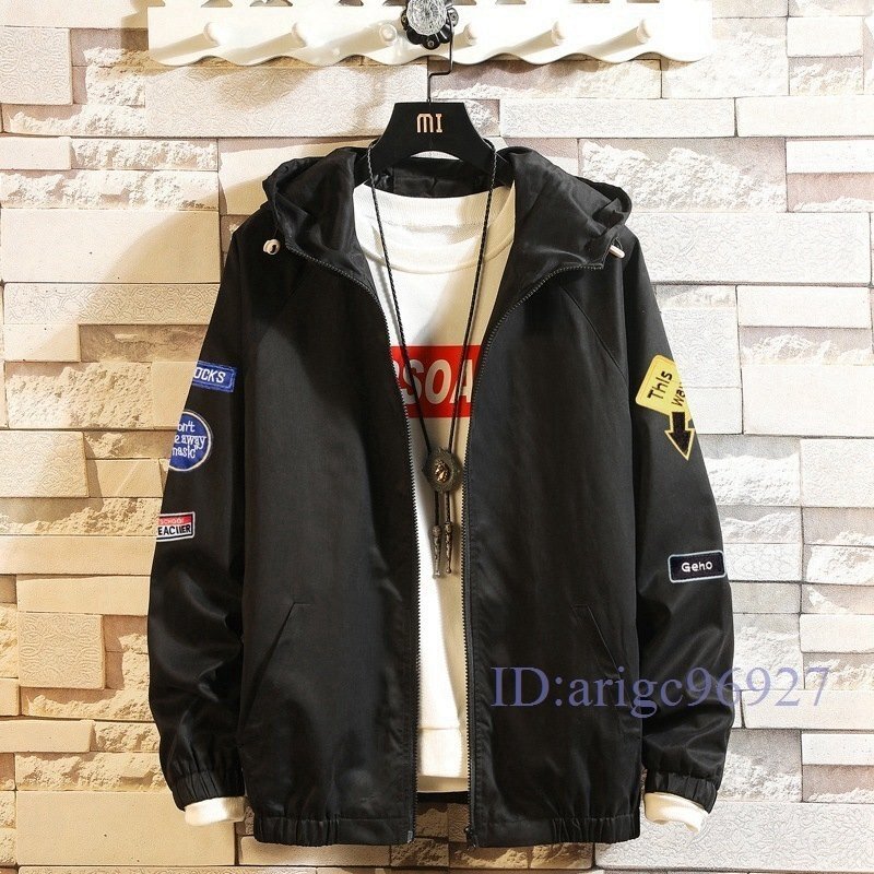 M615★新品 メンズ ブルゾン スカジャン ジャケット 刺繍 フード付き ゆったり カジュアル スタジャン 春夏 大きいサイズ