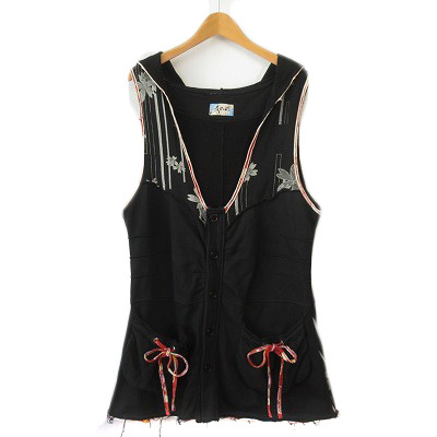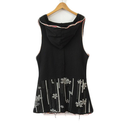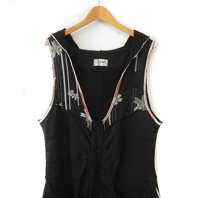 ゴウク gouk ベスト カーディガン フード 和柄 スウェット 黒 ブラック レディース
