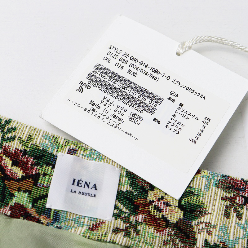 未使用 2022SS イエナ ラ ブークル ENA LA BOUCLE ゴブランJQDタックスカート 36/グリーン ジャガード フレア 花柄【2400014037326】