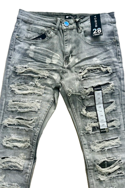 BJ9)WAIMEA ダメージ加工ストレッチ入りデニムパンツ/STACKED JEANS/丈長パンツ/38/AOM8147D/HIPHOP/USサイズ/大きいサイズ