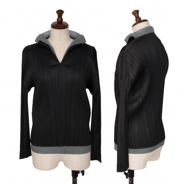 | プリーツプリーズPLEATS PLEASE Vネックレイヤードロングスリーブカットソー 黒3 |