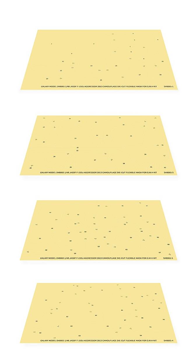・本セット1つで、機体上面、垂直尾翼など当該キットの幾何学系迷彩のほとんどの部分のマスキングとデカールをカバーすることができます。