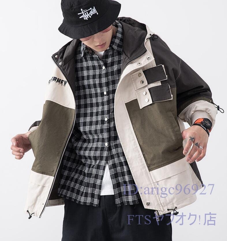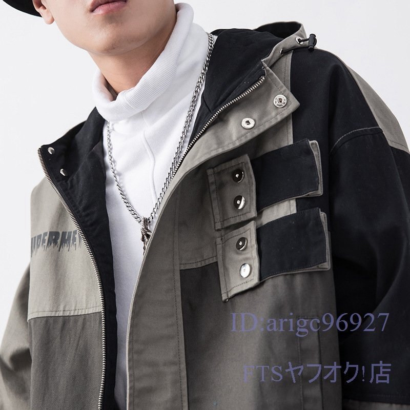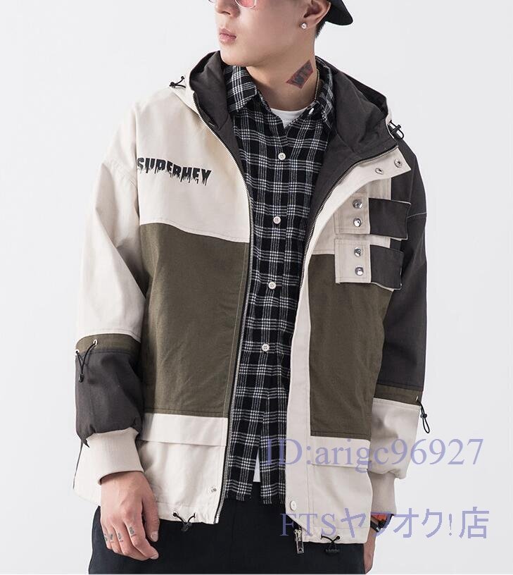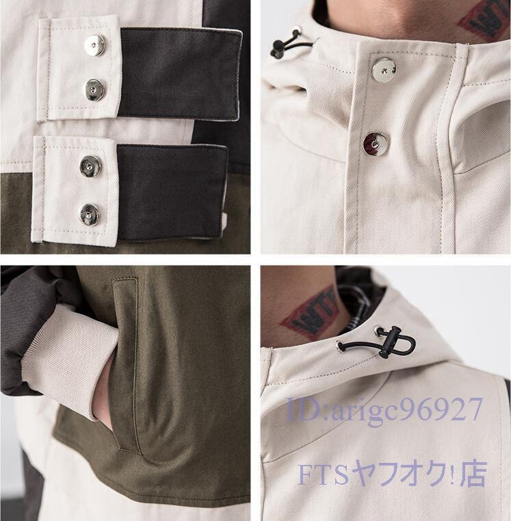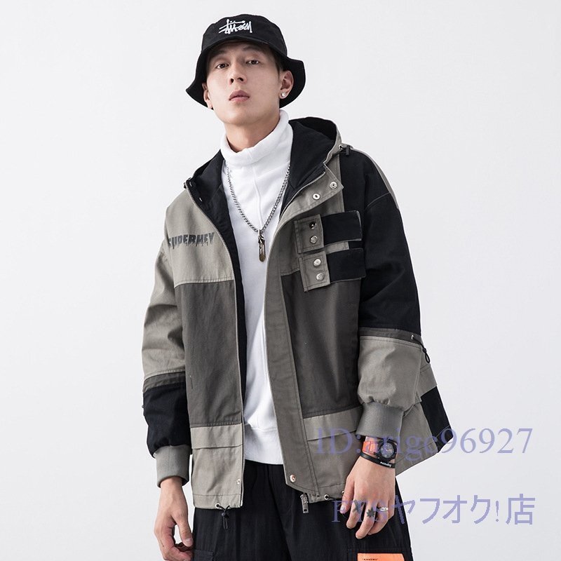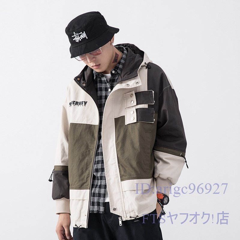 A1965☆新品フード ブルゾン ジャケット メンズ ジャンバー マウンテンパーカー 春 コート 紳士 配色切替「色、サイズM~2XL選択可」