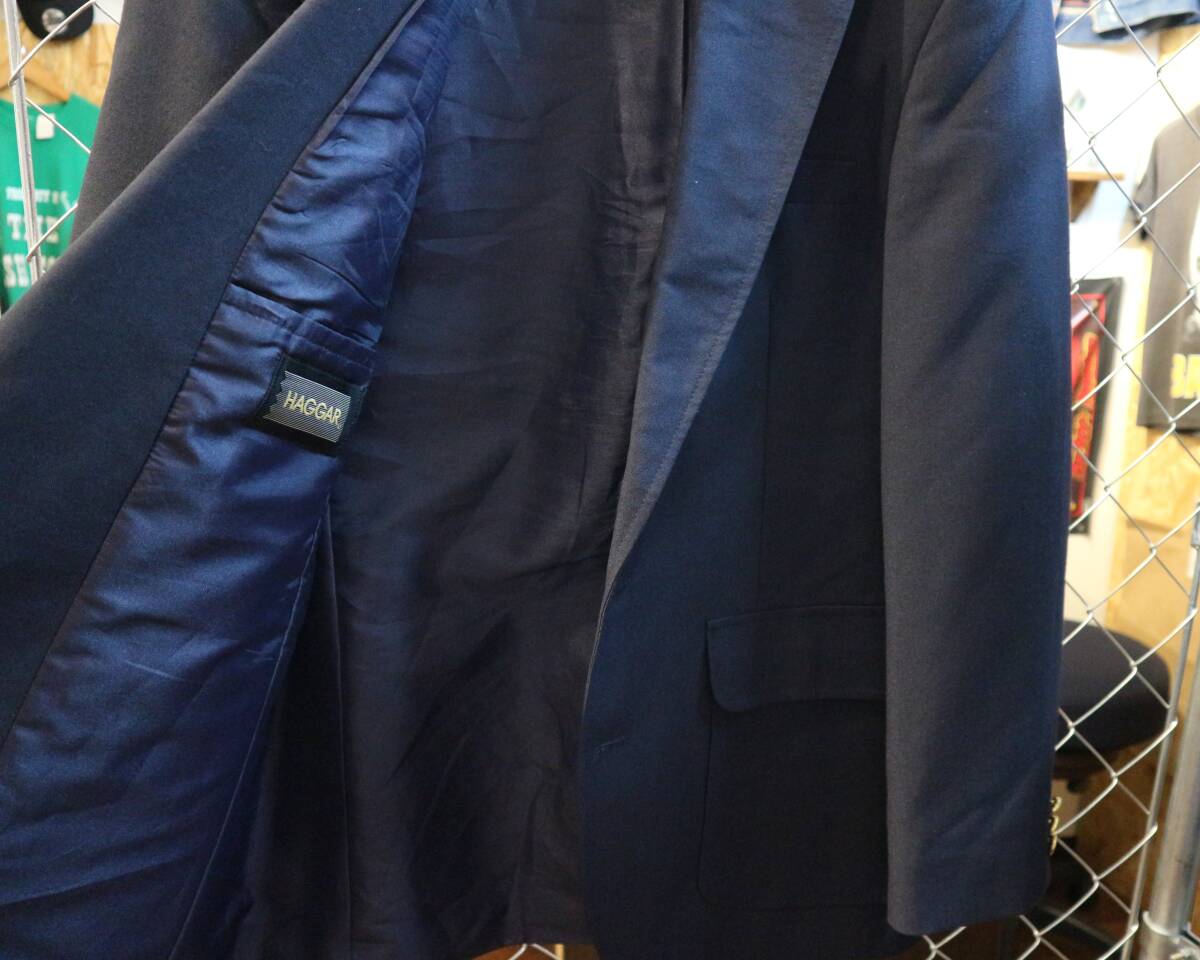 美品★送料520円可★USA古着HAGGARハガー★メキシコ製2釦テーラードジャケット★アメトラ紺ブレ金ボタンブレザー★サイズ38Rポリウール紺 | |||