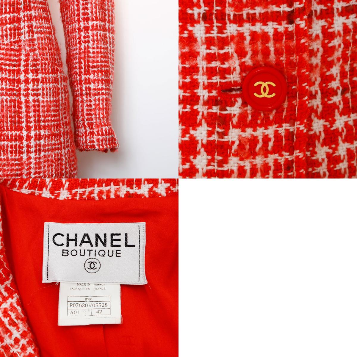 極美品 CHANEL Size42 ツイード ココマークボタン 97P ジャケット レッド