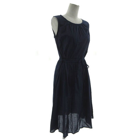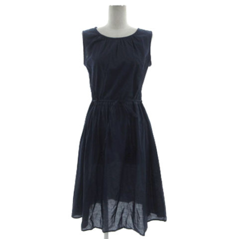 ルティロワドゥドレステリア LE TiROiR DRESSTERIOR ワンピース ギャザーネック ノースリーブ ウエストドローコード ミディ丈 紺 M