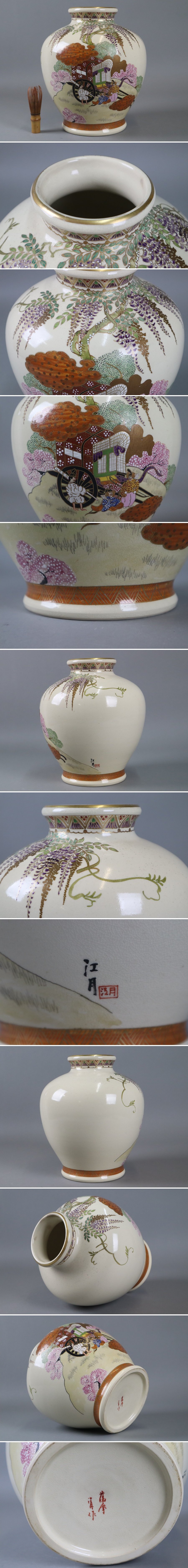 【薩摩焼 清作 江月 金彩色絵 御所車図 花瓶 飾壷 高30cm】