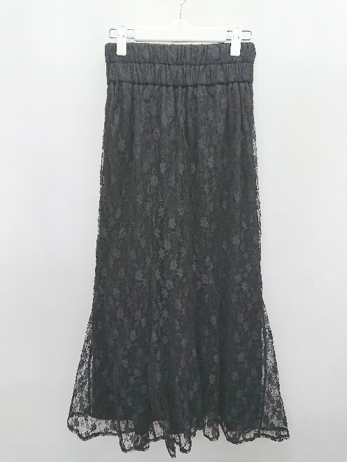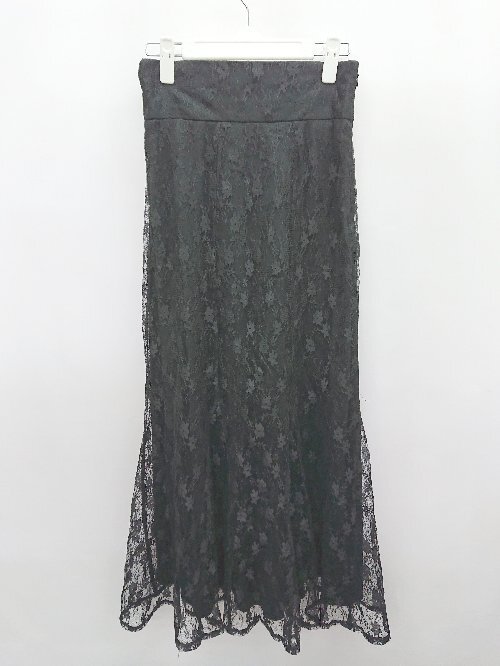 ◇ ⊂ Heather ヘザー レース 花柄 ロング マーメイド スカート サイズF ブラック レディース P