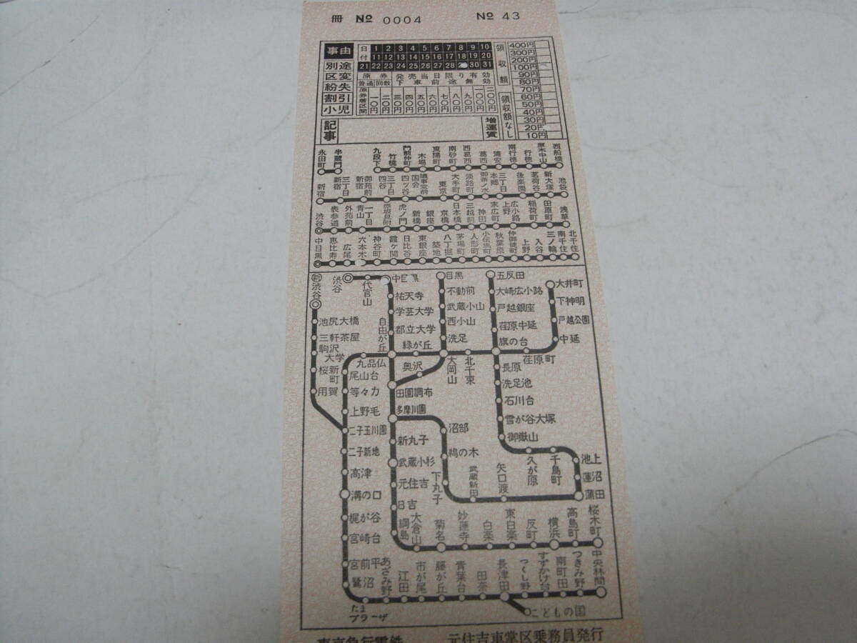 東京急行電鉄 車内補充券 元住吉車掌区乗務員発行 0004-43