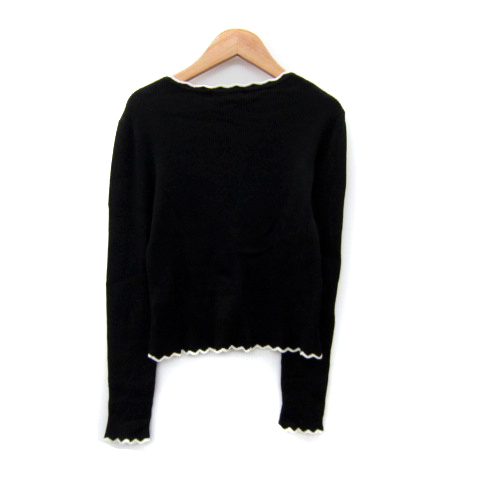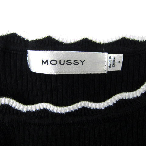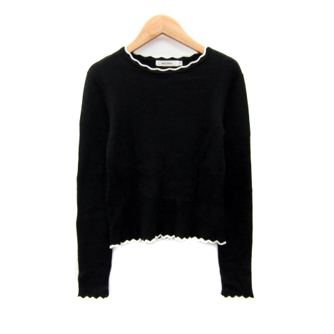 マウジー MOUSSY リブニット カットソー 長袖 ラウンドネック 無地 F 黒 ブラック /SY31 レディース