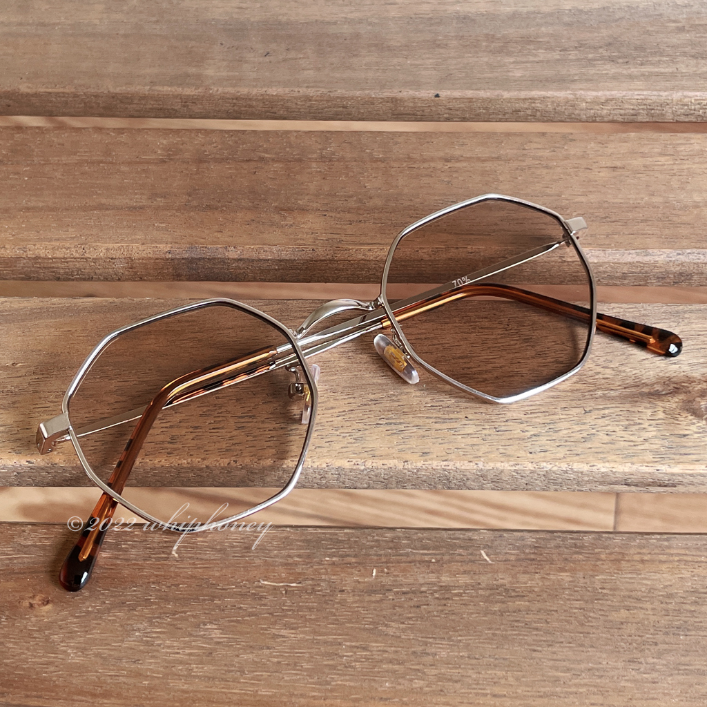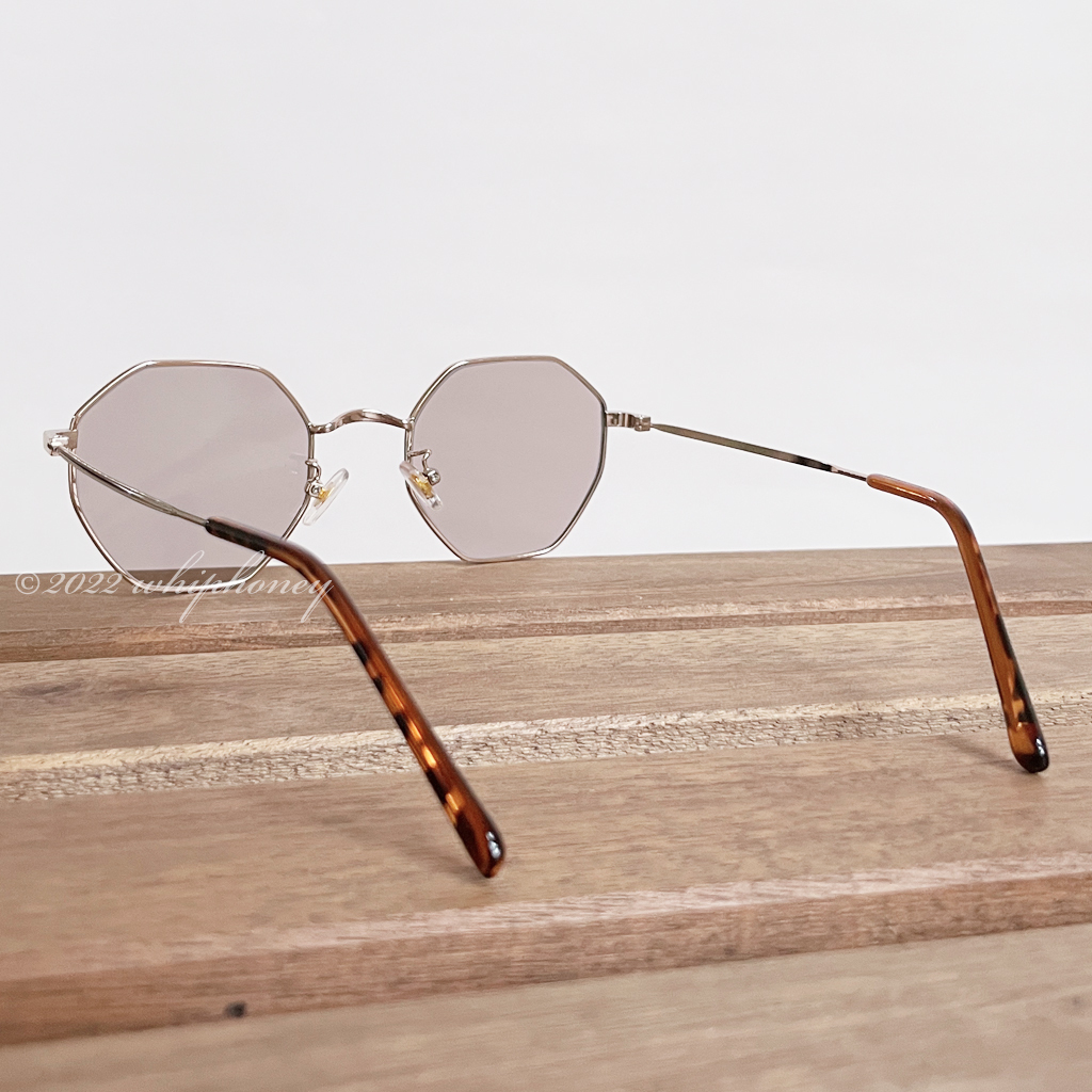 レトロな八角形シェイプ オクタゴンUVサングラス ゴールド ライトブラウン 金縁 伊達メガネ メンズ レディース