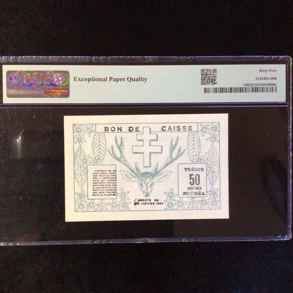 ニューカレドニア 50センティム【1943】『PMGグレーディング鑑定 未使用 65 EPQ』*状態表示については、個人によって多少の違いがありますが画像にて判断し納得して頂ける方のみ入札して下さい。
