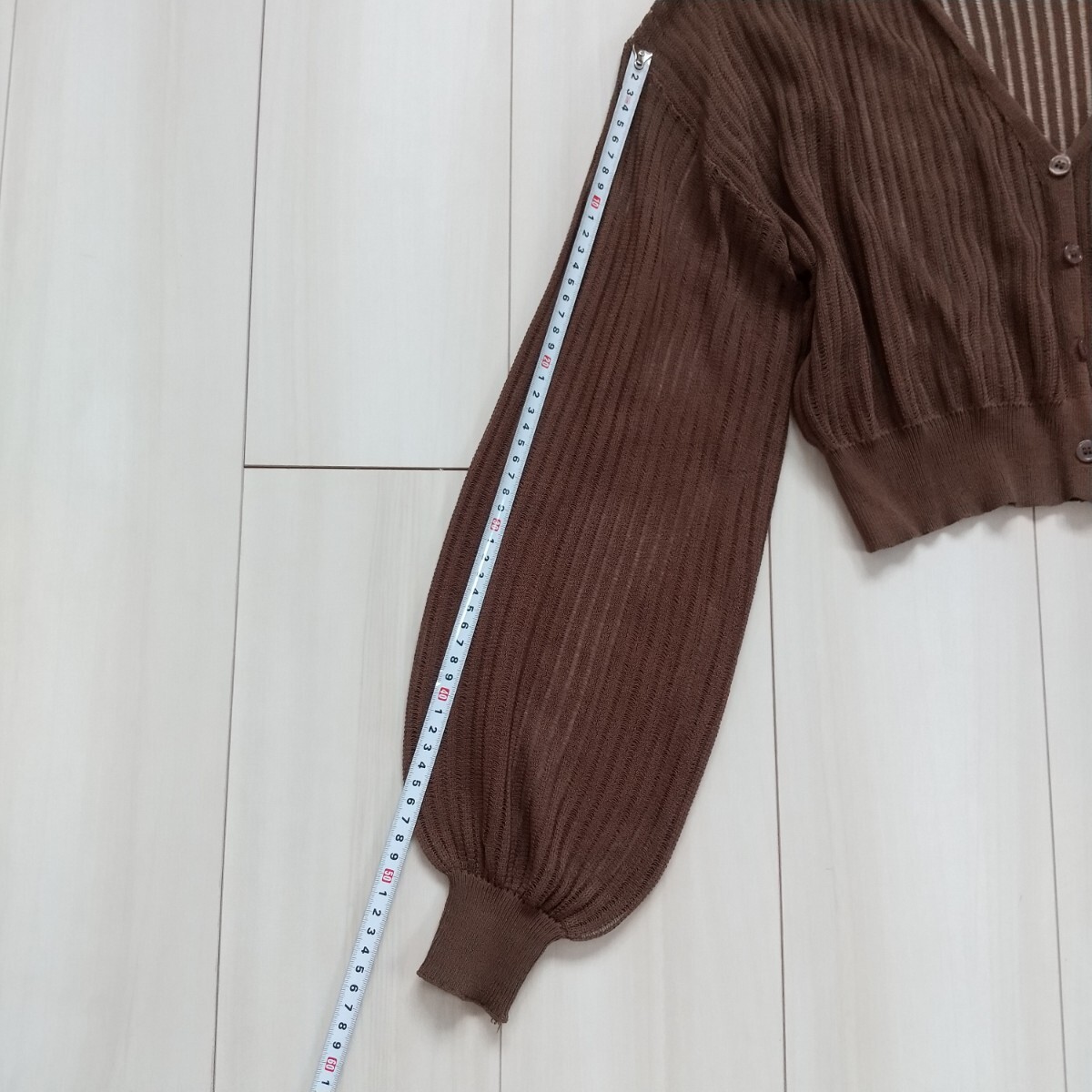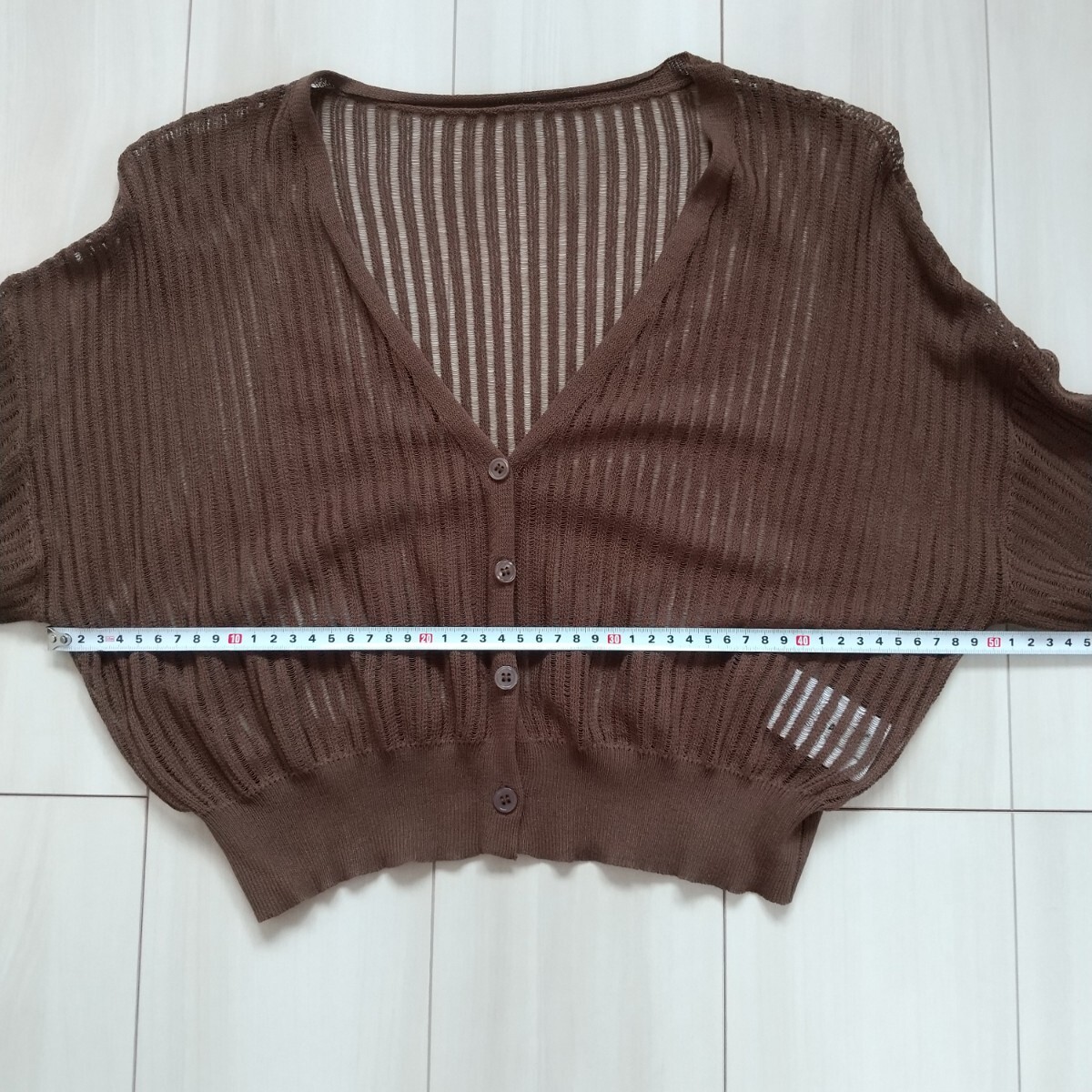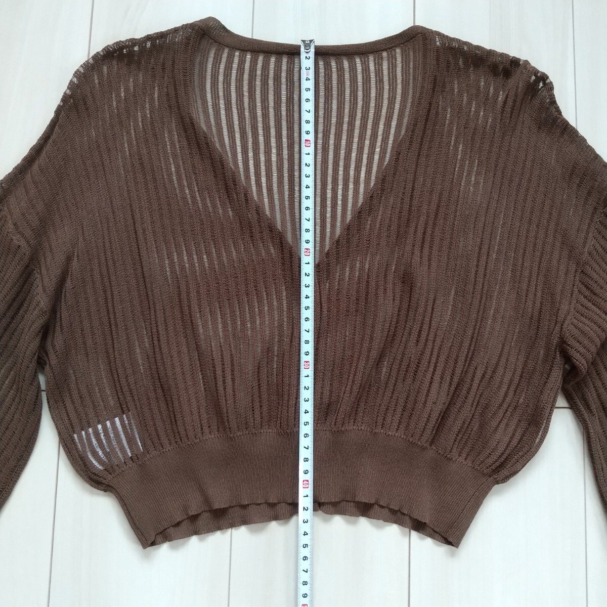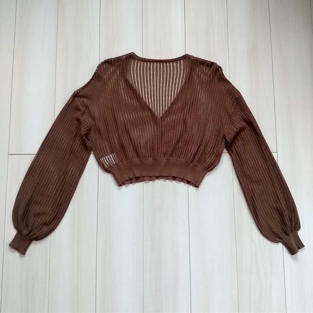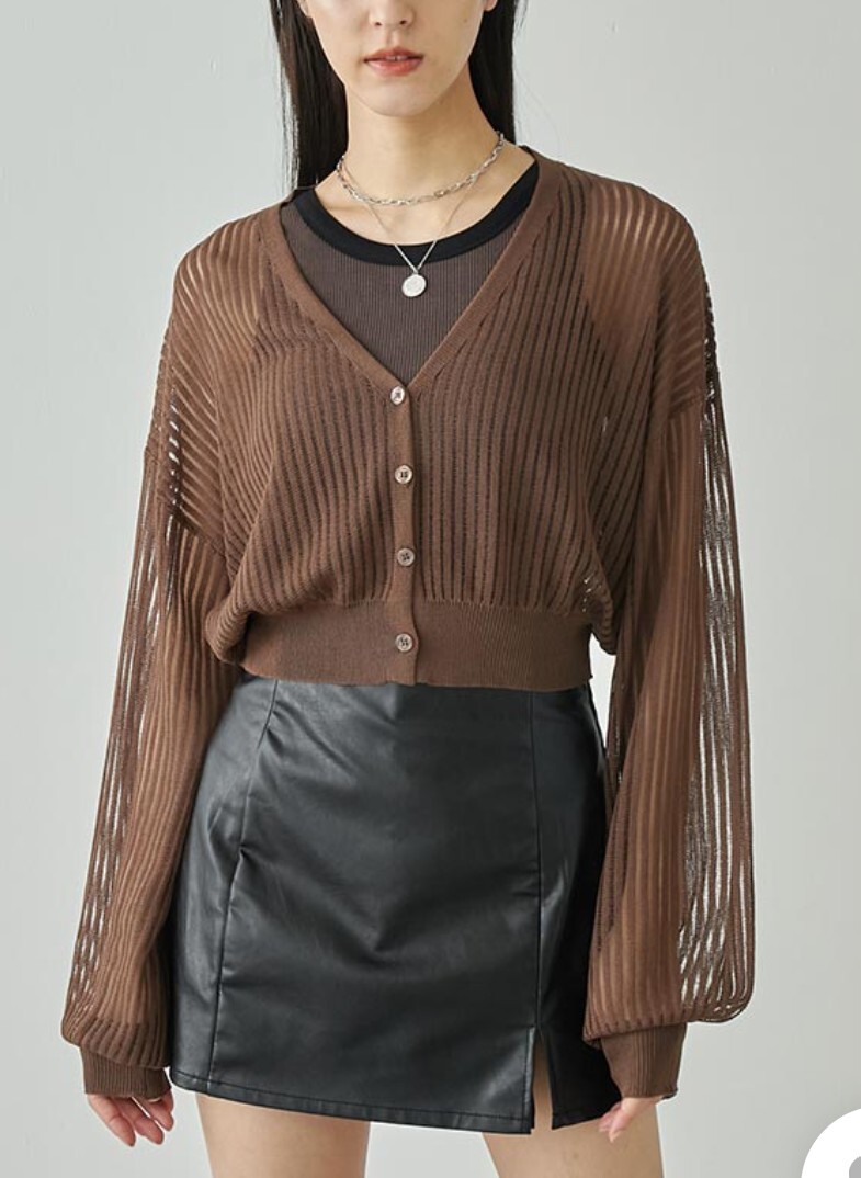 ANAP クロップド ストライプ シアーニットカーディガン ブラウンです。