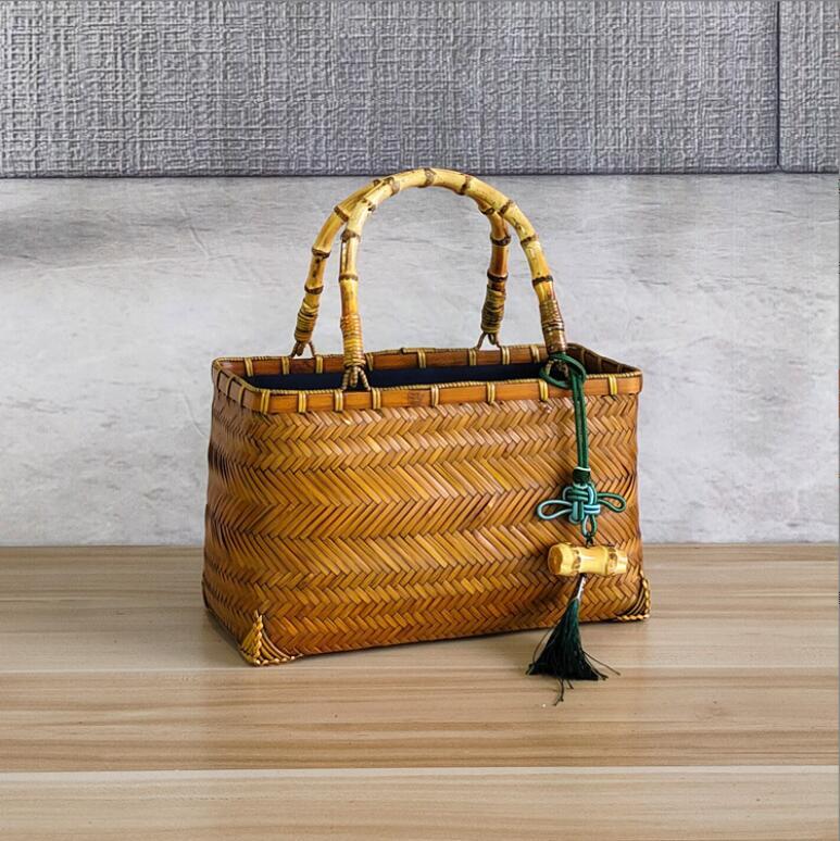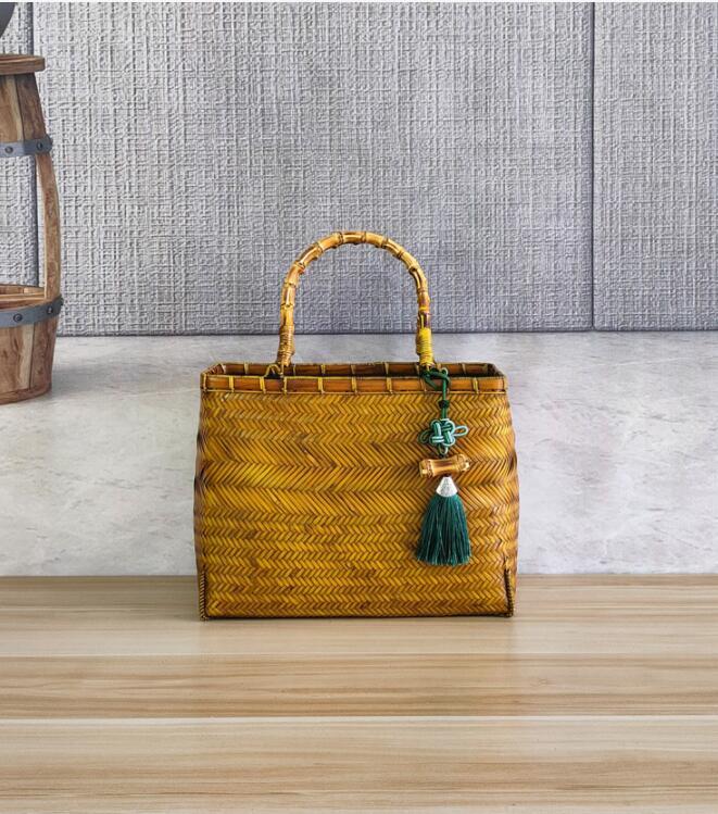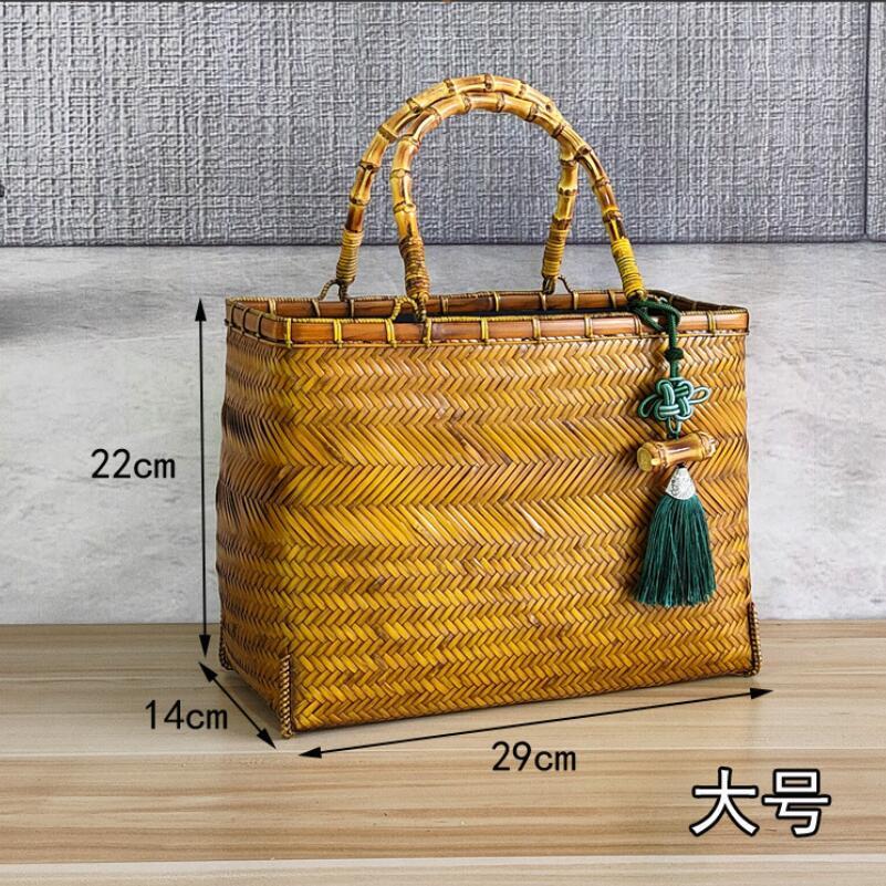 高級感満載!バスケット 収納かご おしゃれ竹籠 編み 取っ手 持ち手  手作りトートバスケット 持ち手 自然の良品