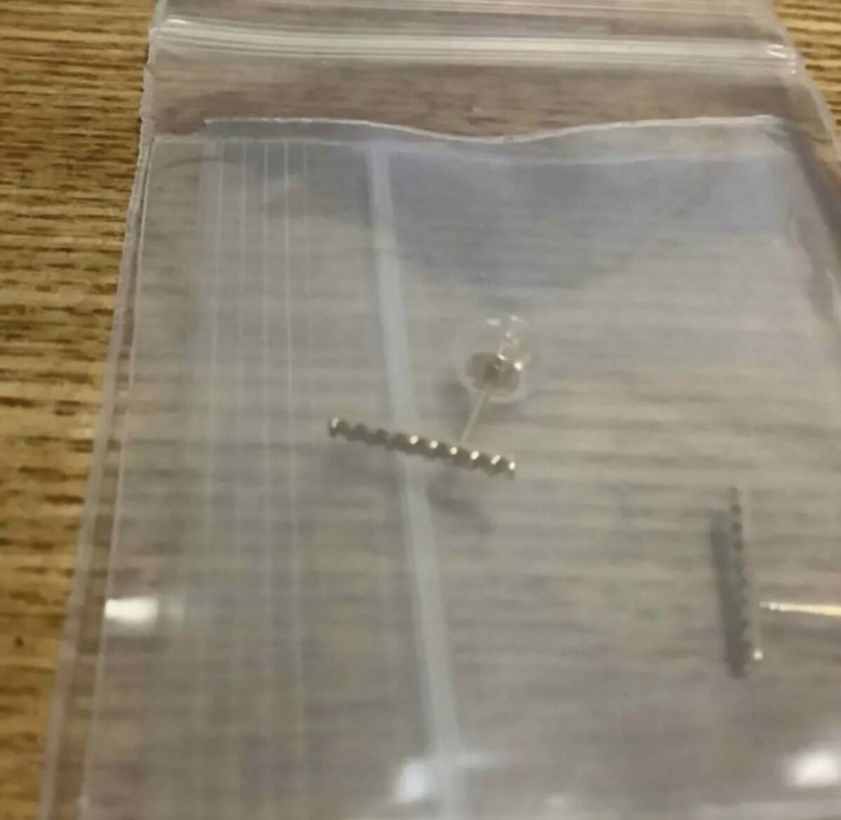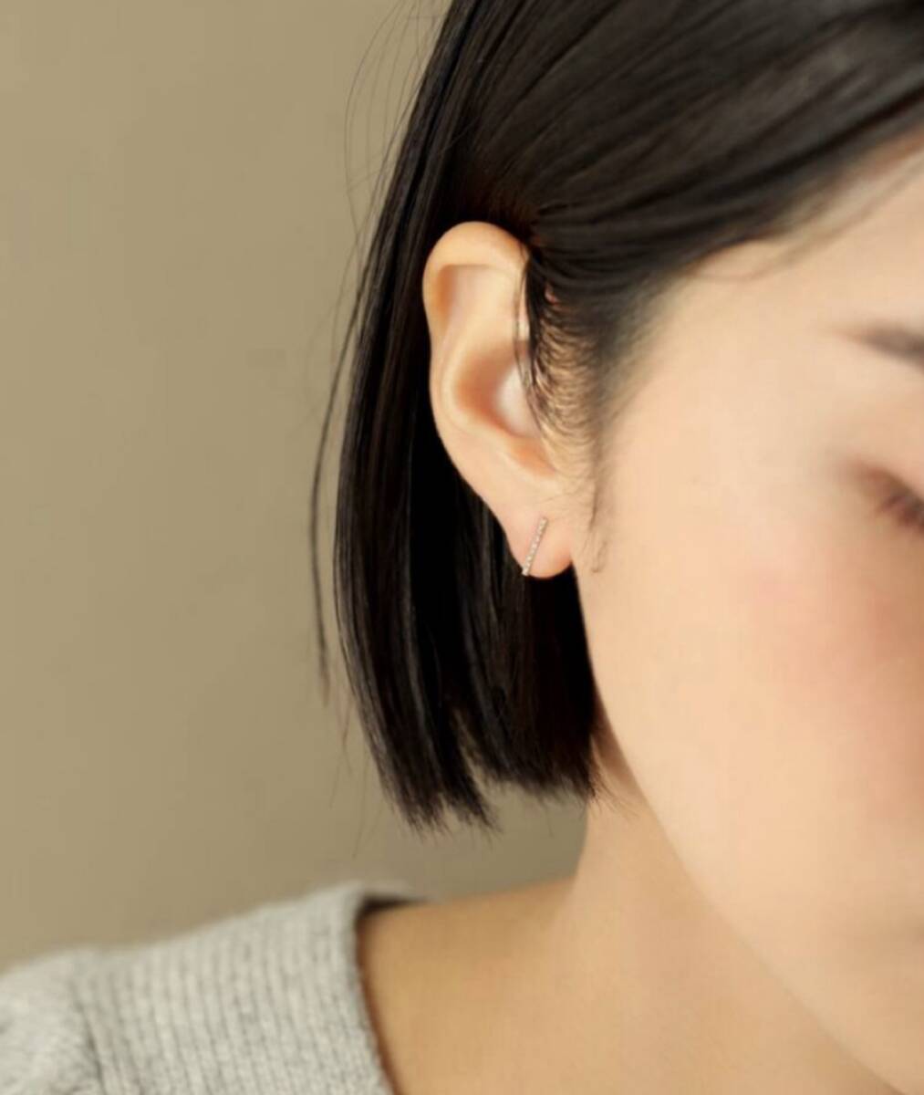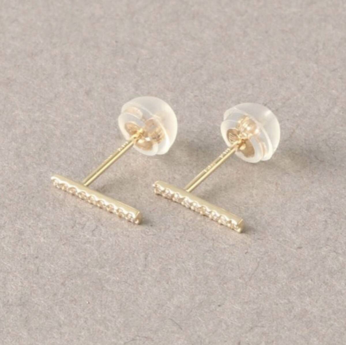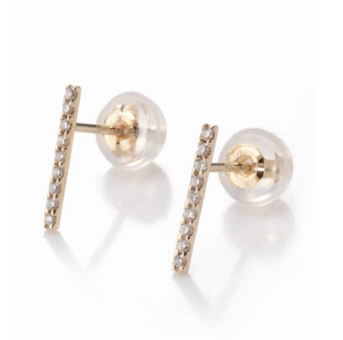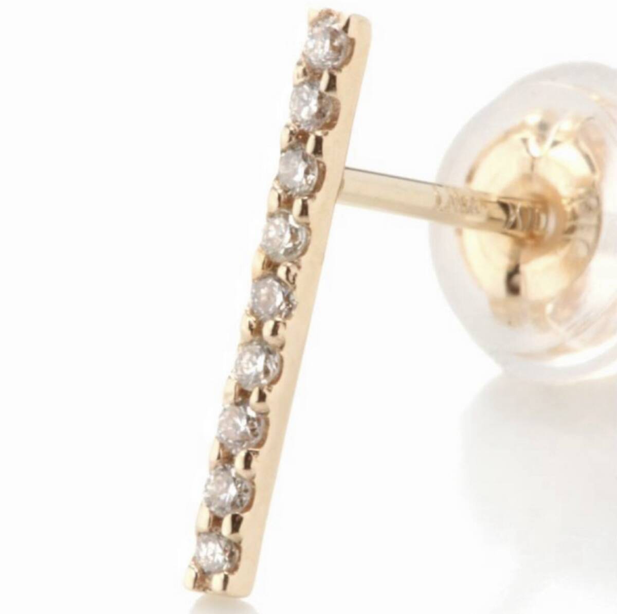 ダイヤモンドを10mmのバーに直線にあしらったピアス。