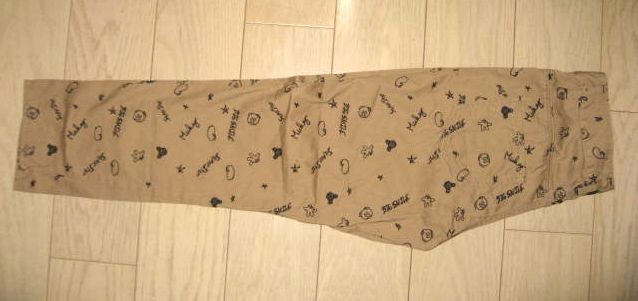 サイズ64で、実寸では、(約、平置き) W :36㎝ H :46㎝ 股上 :28㎝ 股下 :66㎝ わたり幅 :27㎝ 裾幅 :18㎝ 素材 :綿100% 色 :サウンドベージュ系 USEDですが、特に目立った汚れなどなくキレイだと思いますが、シワがあります。 ※ 伸縮性がありません。 |