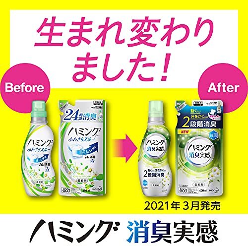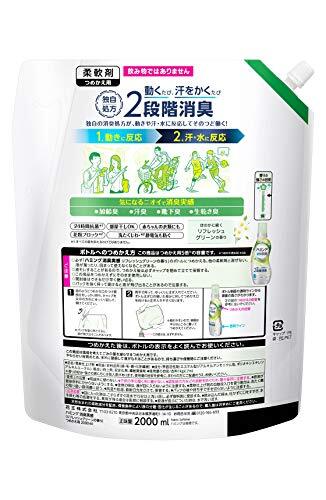 「大容量ハミング消臭実感 液体 柔軟剤 根本消臭+抗菌バリア リフレッシュグリーンの香り 詰替え用 2000ml」▼4901301393456▼(商品説明)リフレッシュグリーンの香り・ 2リットル (x 1) ・・ScentName:ムスクSize:2リットル (x 1)・商品サイズ (幅×奥行×高さ) :25.5×13.9×31.5・内容量:2000ml・ブラント名:ハミング・メーカー名: 花王・商品の重量: 2.06kg説明 独自処方。動くたび、汗をかくだび2段階消臭 動いたり、汗をかいてニオイが気になる瞬間に都度消臭。 汗臭、靴下臭、加齢臭、生乾き臭、気になるニオイで消臭実感。 ほのかに続くリフレッシュグリーンの香り。 ・24時間抗菌 ・部屋干しOK・赤ちゃんの衣類にも使えます・ 花粉の付着、洗たくじわ、静電気も防ぐ すべての菌に対してがあるわけではありません。