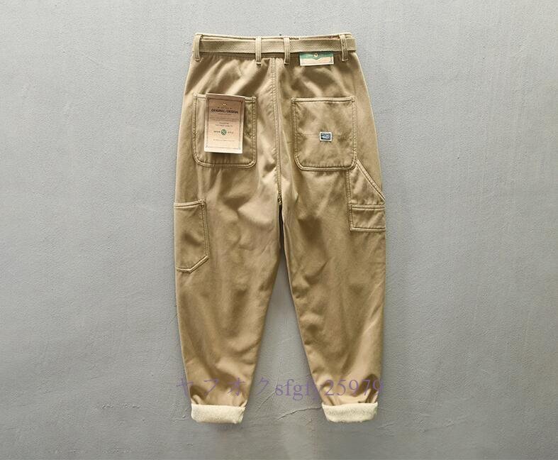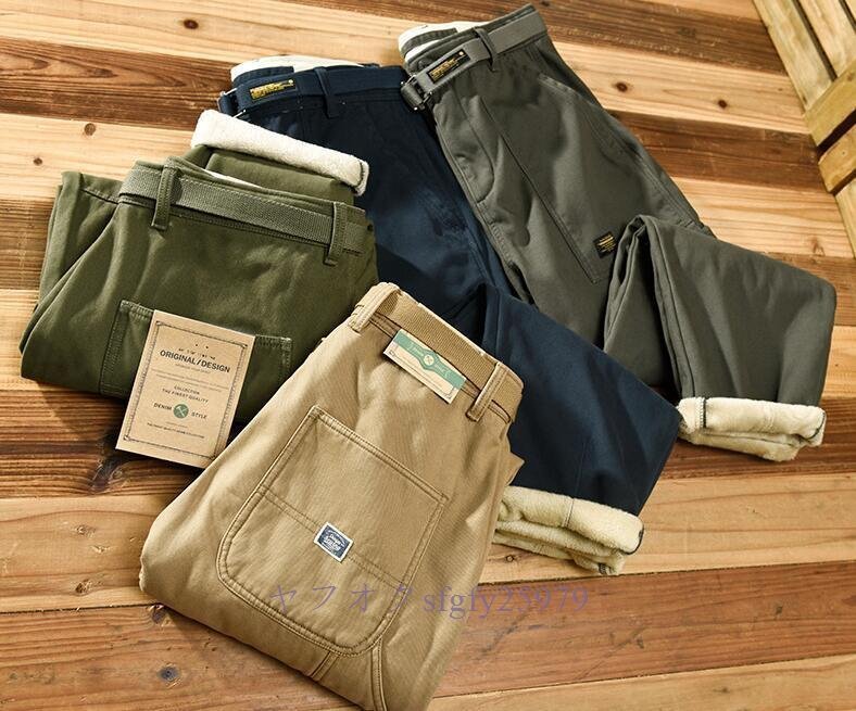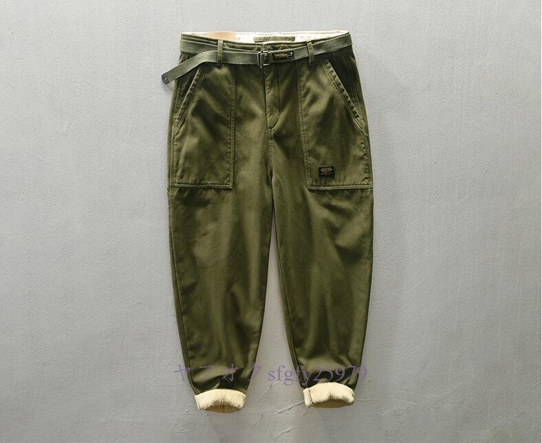 P698新品メンズ ワークパンツ カーゴパンツ 裏フリースパンツ ベルト付き 裏起毛ボア ジョガーパンツ 作業ズボン グリーン