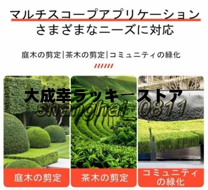 【人間工学設計&操作簡単】しっかり持てるU字型ハンドル。手にフィットし、腕の負担を軽減でき、作業はとても快適です。純銅製高出力・高耐久モーターが強いパワーを提供し、最大ストローク数1500min-1 を実現。お庭、茶畑、公園、低木での剪定作業などに適用でき。