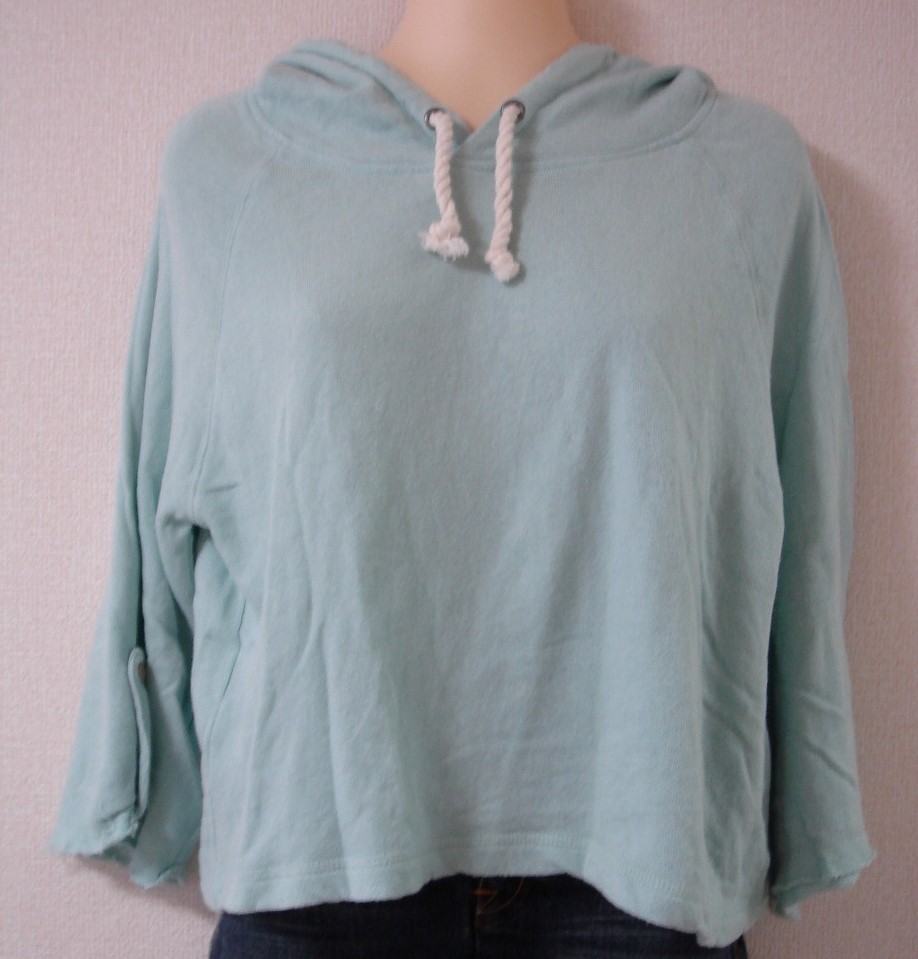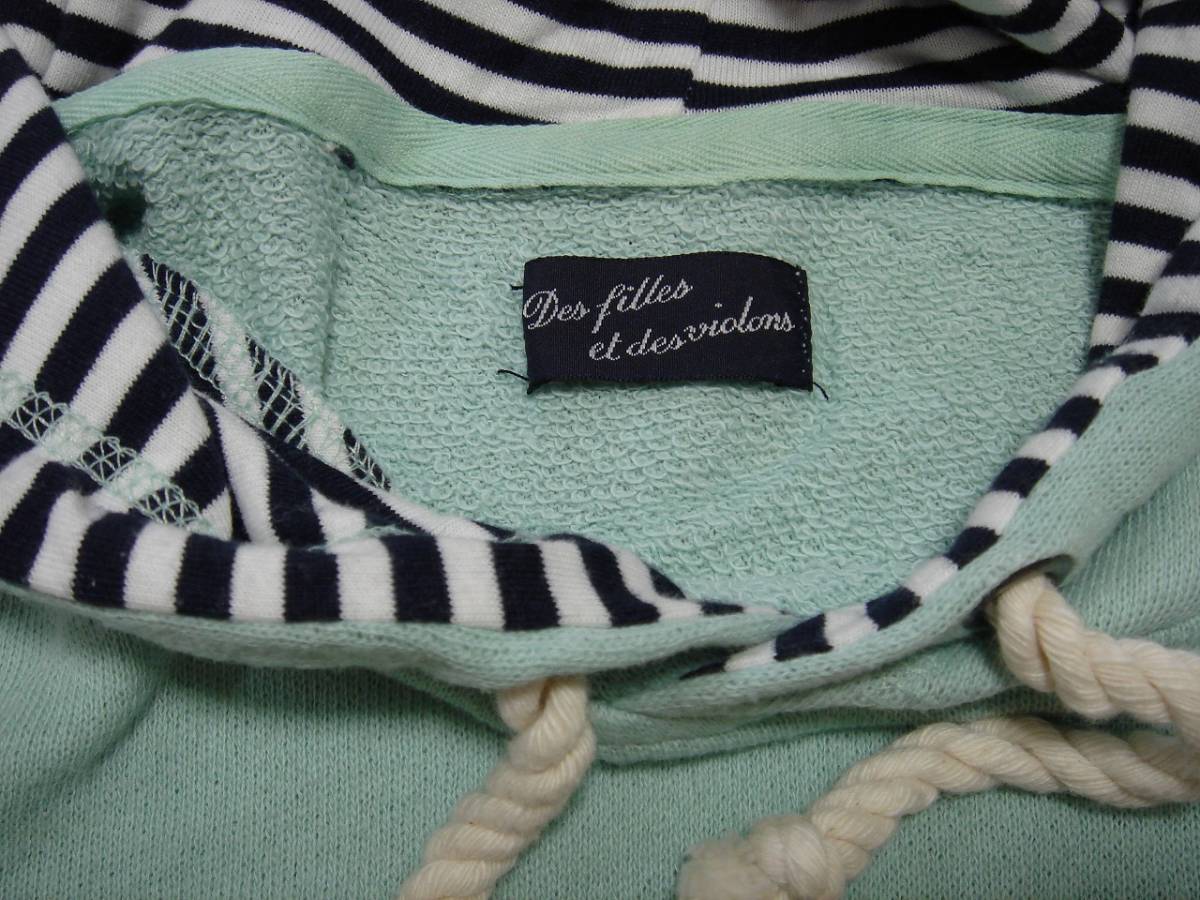 Des filles et des violons デス ◆ カジュアル ダメージ パーカー パステルグリーン ◆ ショート丈 フリーサイズ 重ね着 ◆ USED ◆