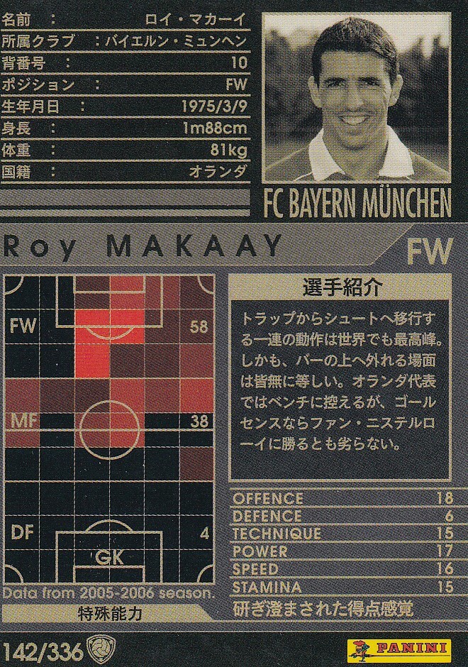 PANINI WCCF EUROPEAN CLUBS 2005-2006 Bayern Munchen バイエルンミュンヘン ロイ マカーイ パニーニフットボールリーグ 142/336
