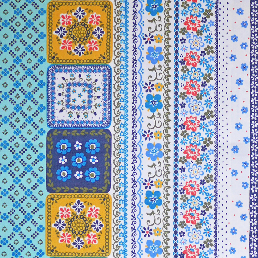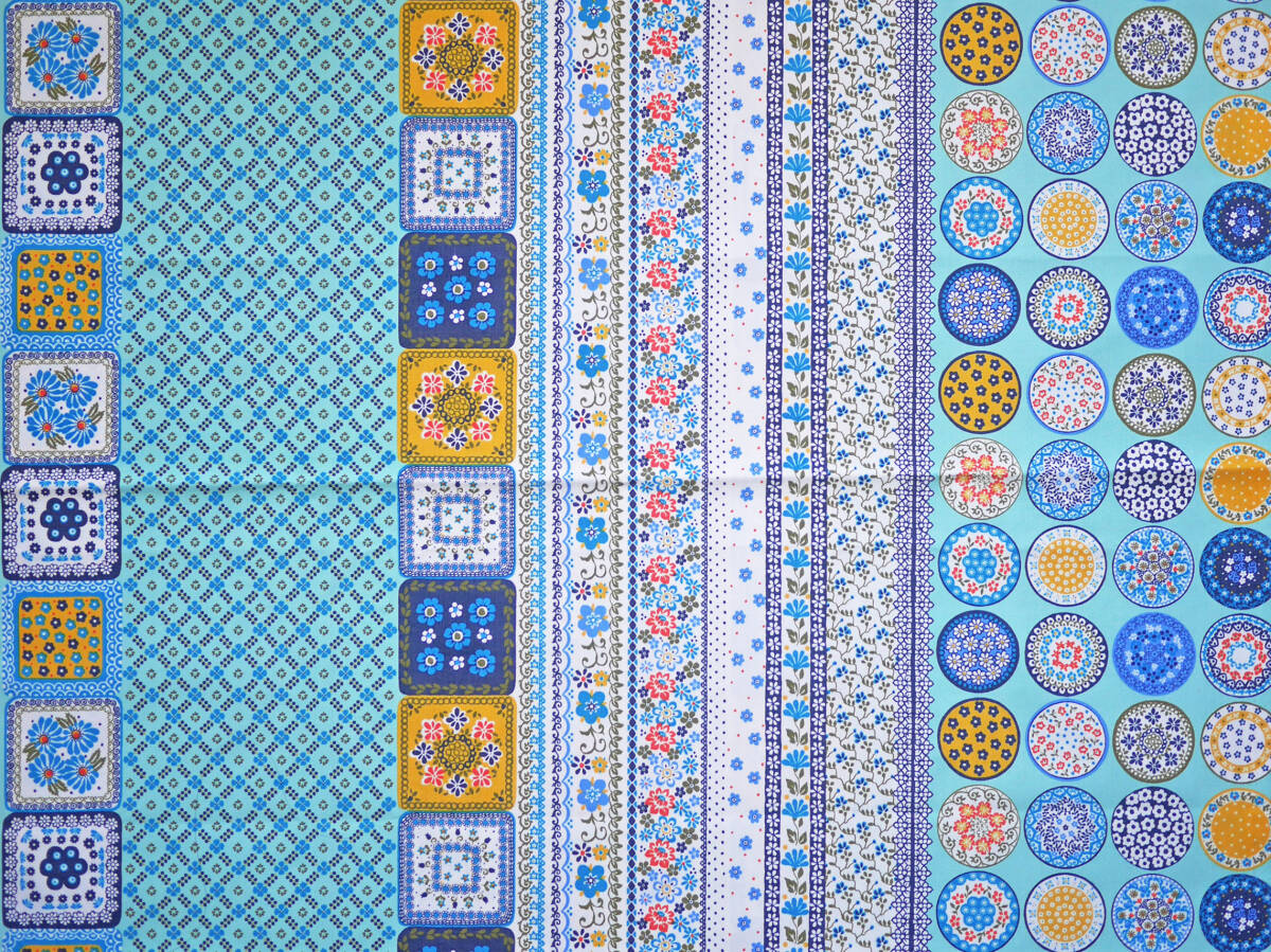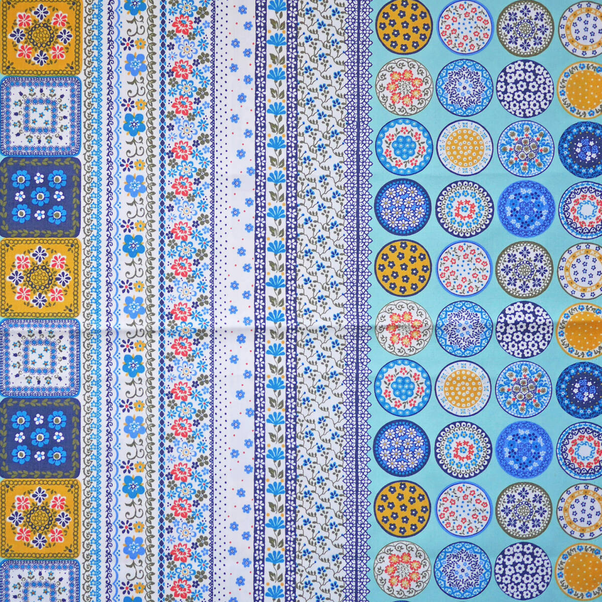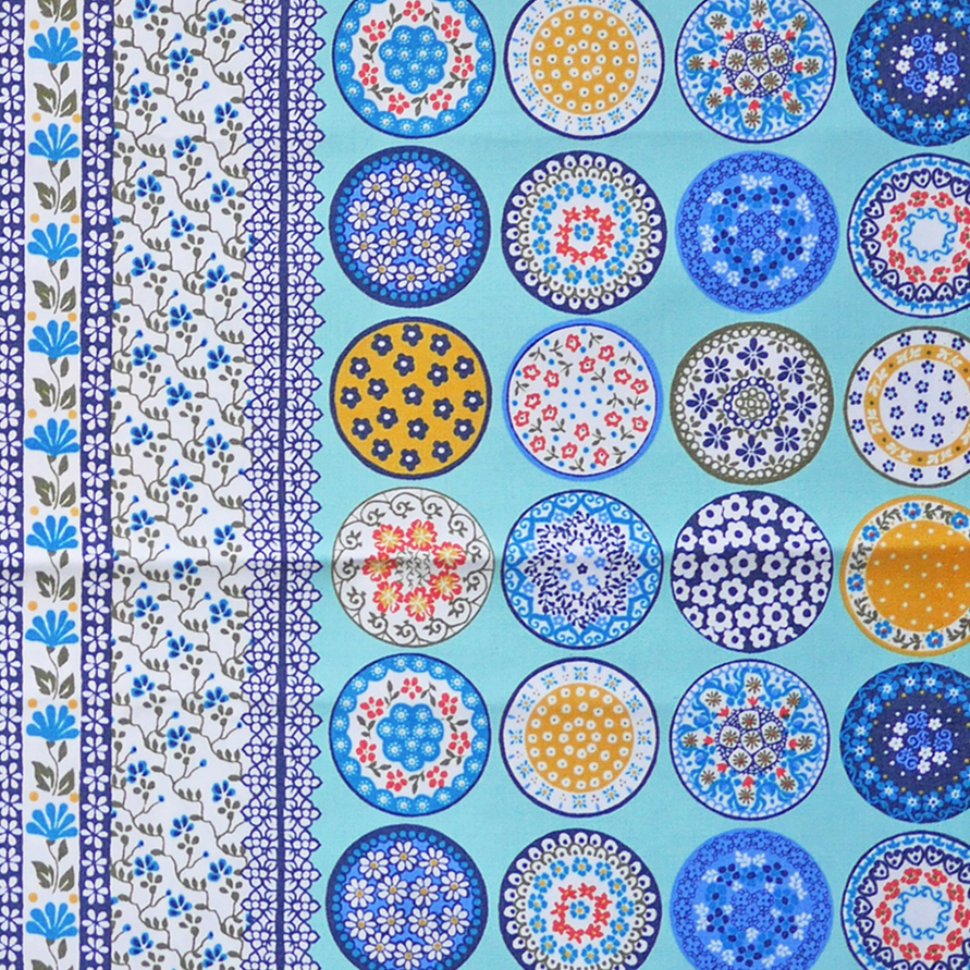 ポーリッシュ柄 生地(W72cm × H54cm)POLISH DAYS 水色 / ポーリッシュポタリー お皿柄 食器柄 丸 四角 東欧 北欧 カットクロス はぎれ